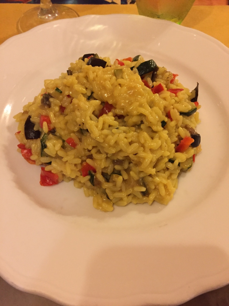 シエナ訪れたこちらのレストラン英語のメニューもありました。注文したのは、オススメだと言うトリュフのパスタとサフランのリゾットトリュフのパスタは、さすがに香りが良く美味しかったです。そして、リゾットも野菜などからの旨味を吸った米がアルデンテで、こちらも絶品でした。