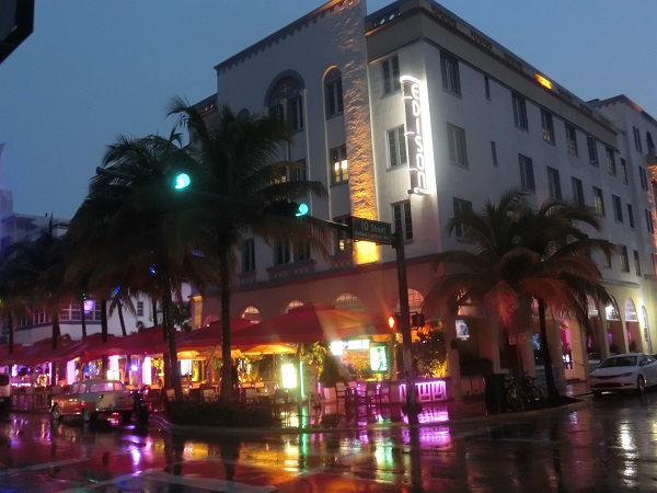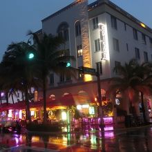 アールデコとは 幾何学的な装飾だそうです。マイアミビーチのこの一角は アールデコと言われているようです。レストランも 幾何学的?な 感じで 色のコンビネーションも派手で しゃれた色彩のものが並んでいます。あいにくの雨でしたが いい散歩道でした。