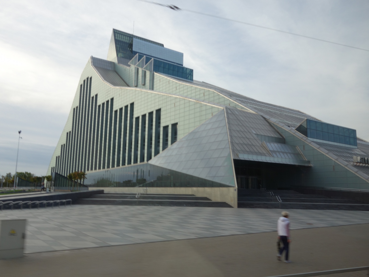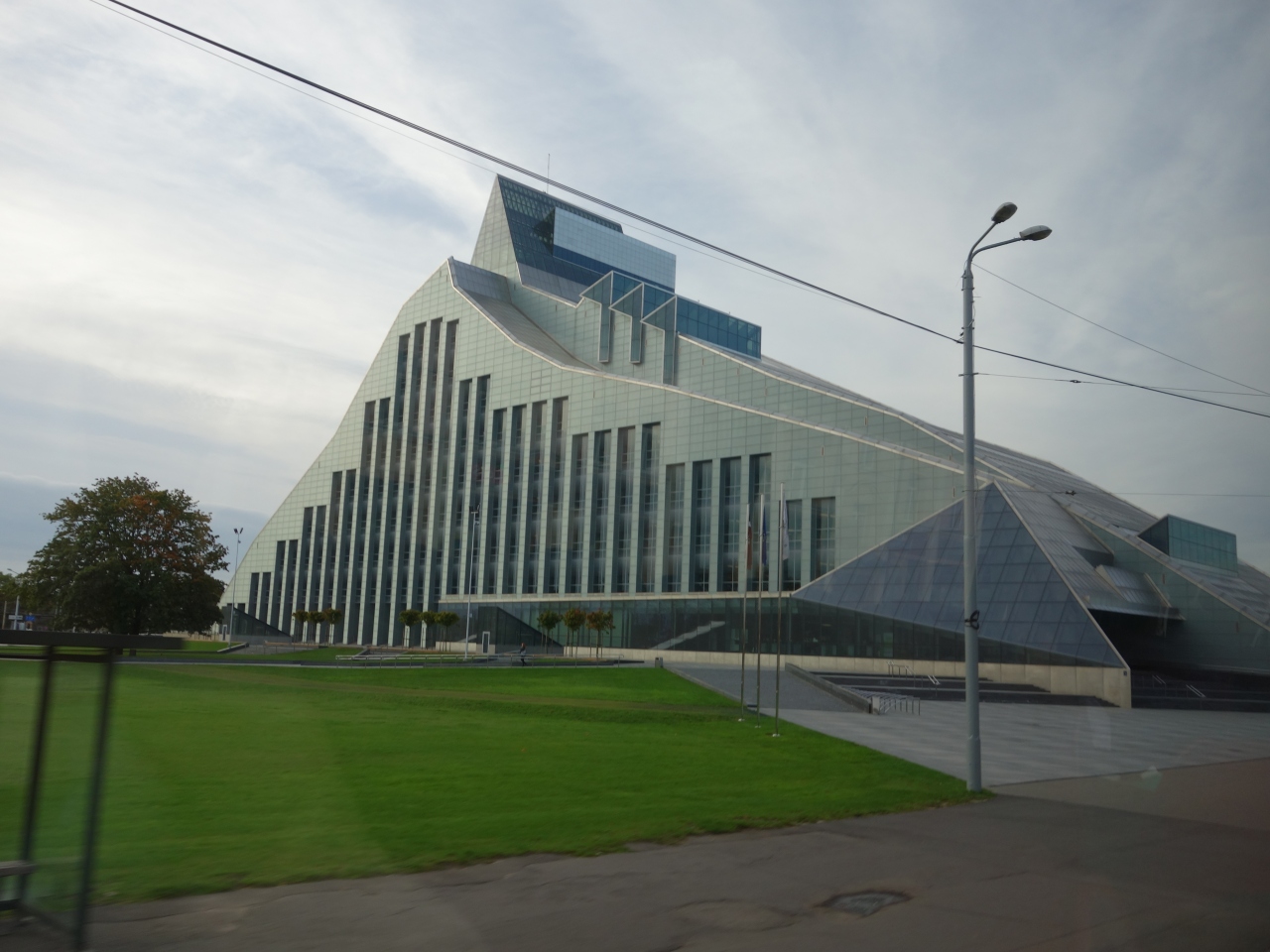 リーガの旧市街の西を流れている川幅の広い川です。水量もあるので,船の航行ができそうです。川向こうが新市街で,すぐそばに国立図書館の斬新なデザインが目に付きます。旧市街はすこし小高いところですが,川などを見下すことはできません。