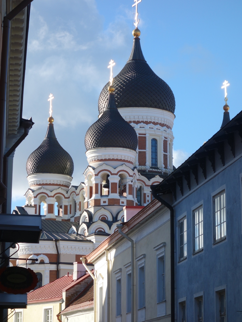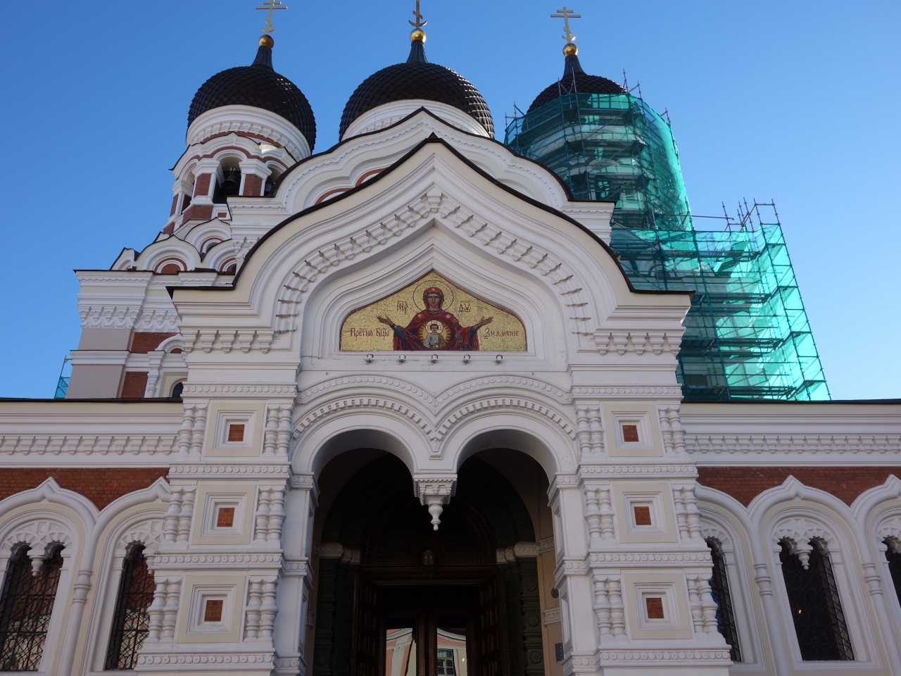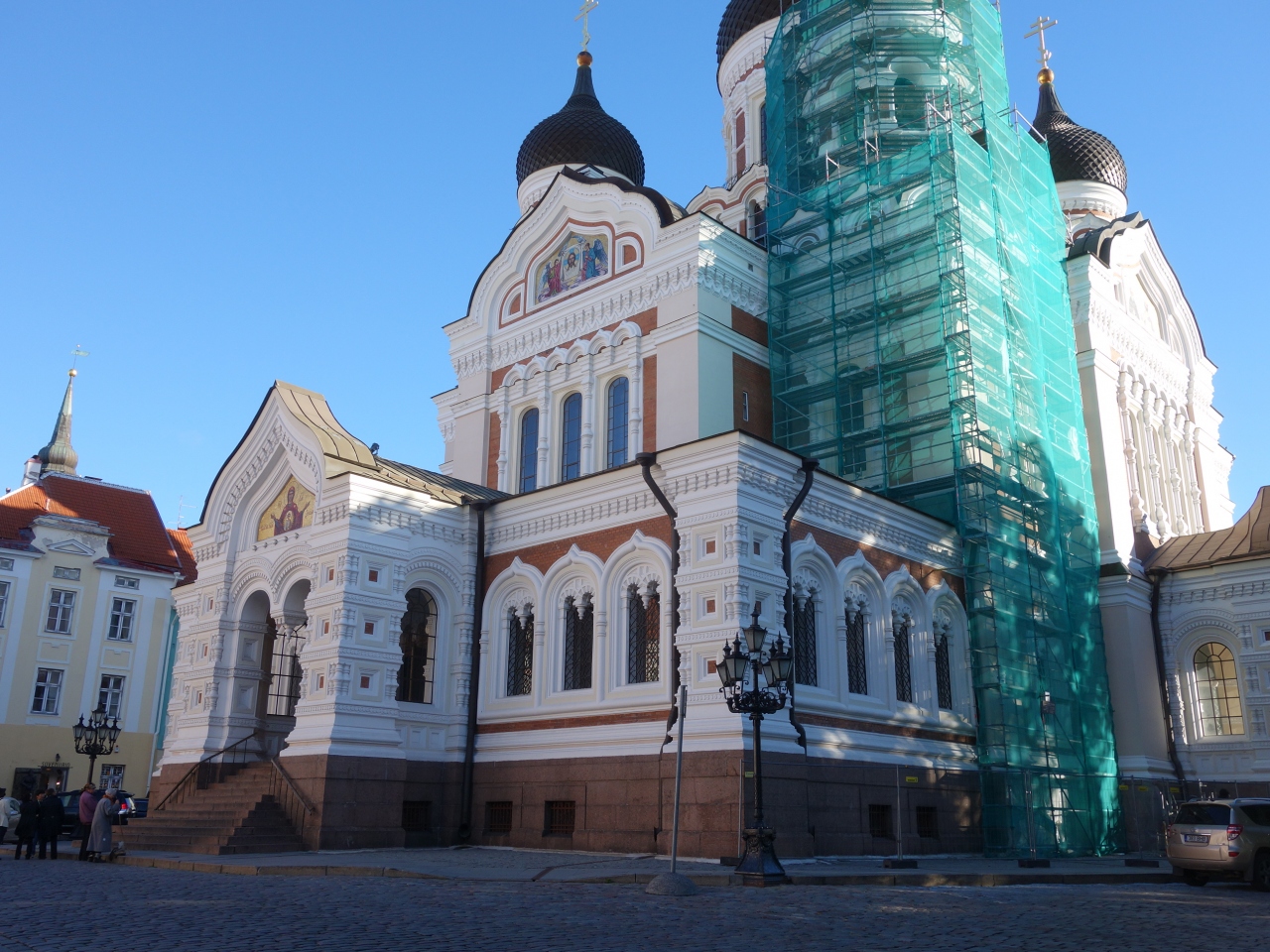 山の手(トームペア)の一番高いところに位置していて,タリン市外を見下しています。大統領官邸の正面です。聖堂と塔が一体となっている構造です。たまねぎ形のドームはどこからも見ることができます。タリン第一の建築です。