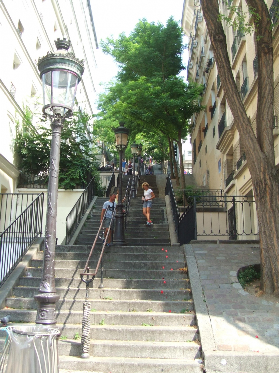 サクレクール寺院に向かう階段にはミサンガ売りがいますが、アベス駅から向かうとちょうど脇道の階段を上っていくので全く会いませんでした。アベス駅は地下深くにあるため非常に長いらせん階段がありますが、大型のエレベーターがあるので大丈夫です。ほとんどの乗客がエレベーターに乗るので、一緒に待っていれば良いです。