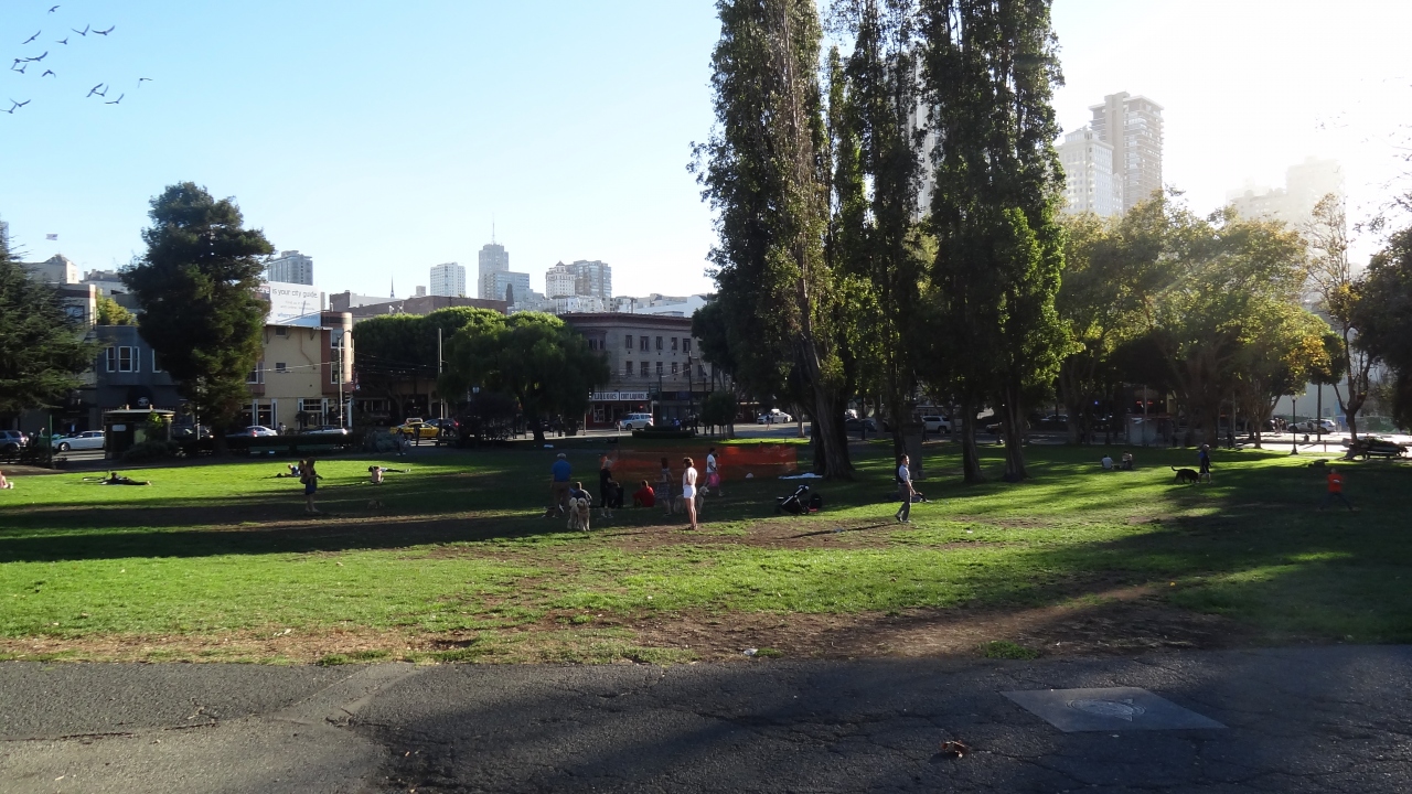ワシントンスクエアは サンフランシスコのコイトタワーから程近い、コロンバスアベニュー沿いにあるスクエアです。起伏のある広めのスクエアで、家族連れ、犬連れが多かったです。地元の人たちが週末をのんびりしたり、午後の語らいに集まっているのどかさがありました。脇には美しい聖ピーター&ボール教会があります。