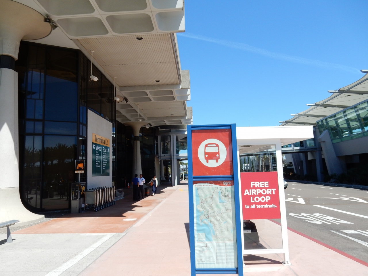 空港からダウンタウンまで、#992のバスが走っており、このバスはミッドウエー博物館まで海沿いを、その後サンタ・フェ・デポを通ってブロードウエイに向かいます。