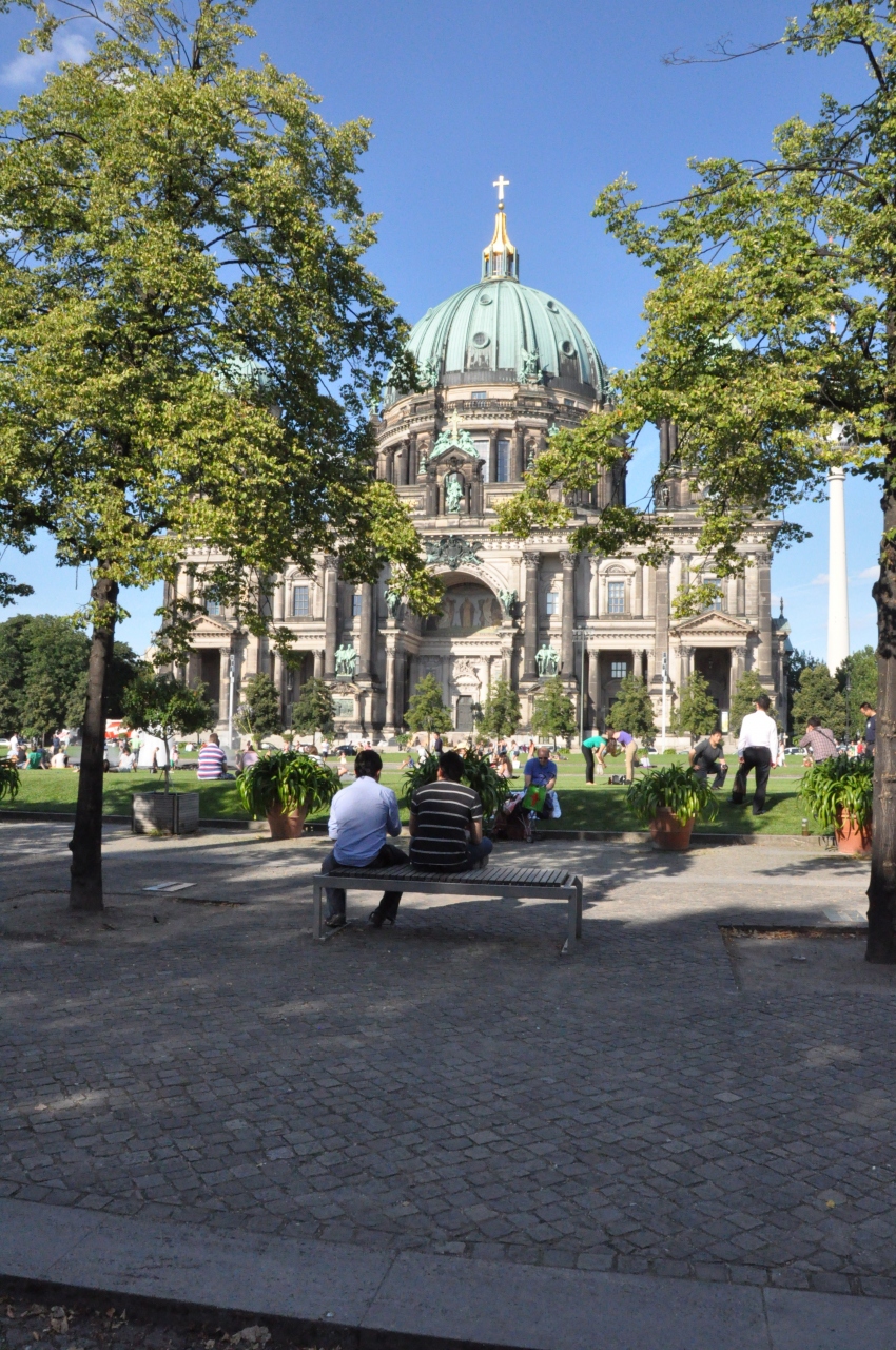 今は格安飛行機があり、100ユーロ以内で国内を移動できますので、ベルリンにはちょくちょく来ます。いつも来るのはこの博物館島のあたり、そしてこのベルリン大聖堂はお気に入りです。前の芝生に寝転んでいる人もたくさんいました。