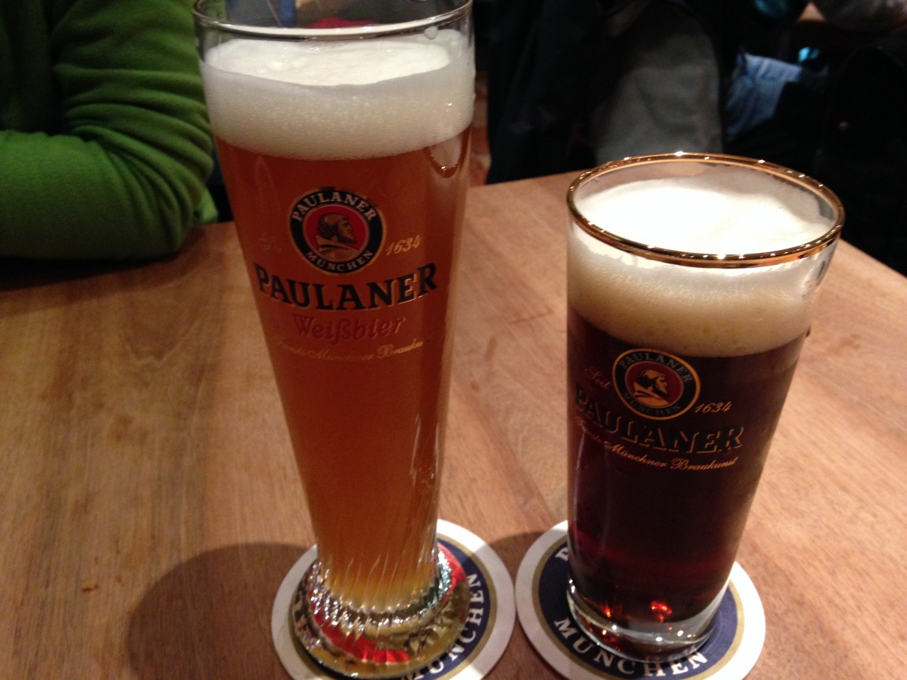 マリエン広場から東側歩いて5分ほどにあります。店の前には豚の銅像があるのが目印。行ったのがちょうど土曜日だったので、店内は満員でした。手前がパブスペースで奥がレストランスペースですが、どちらでも食事は食べれます。店員が少ないので、空いている席にどんどん座りましょう。メニューは頼むと出してくれます(ドイツ語、英語)。さすがビール直営店だけあって、自社ビールが数多くあります。ビールは小麦の味がしっかりしており、とてもおいしい。肉じゃが(コンソメ煮)もやさしい味でおいしかったです。