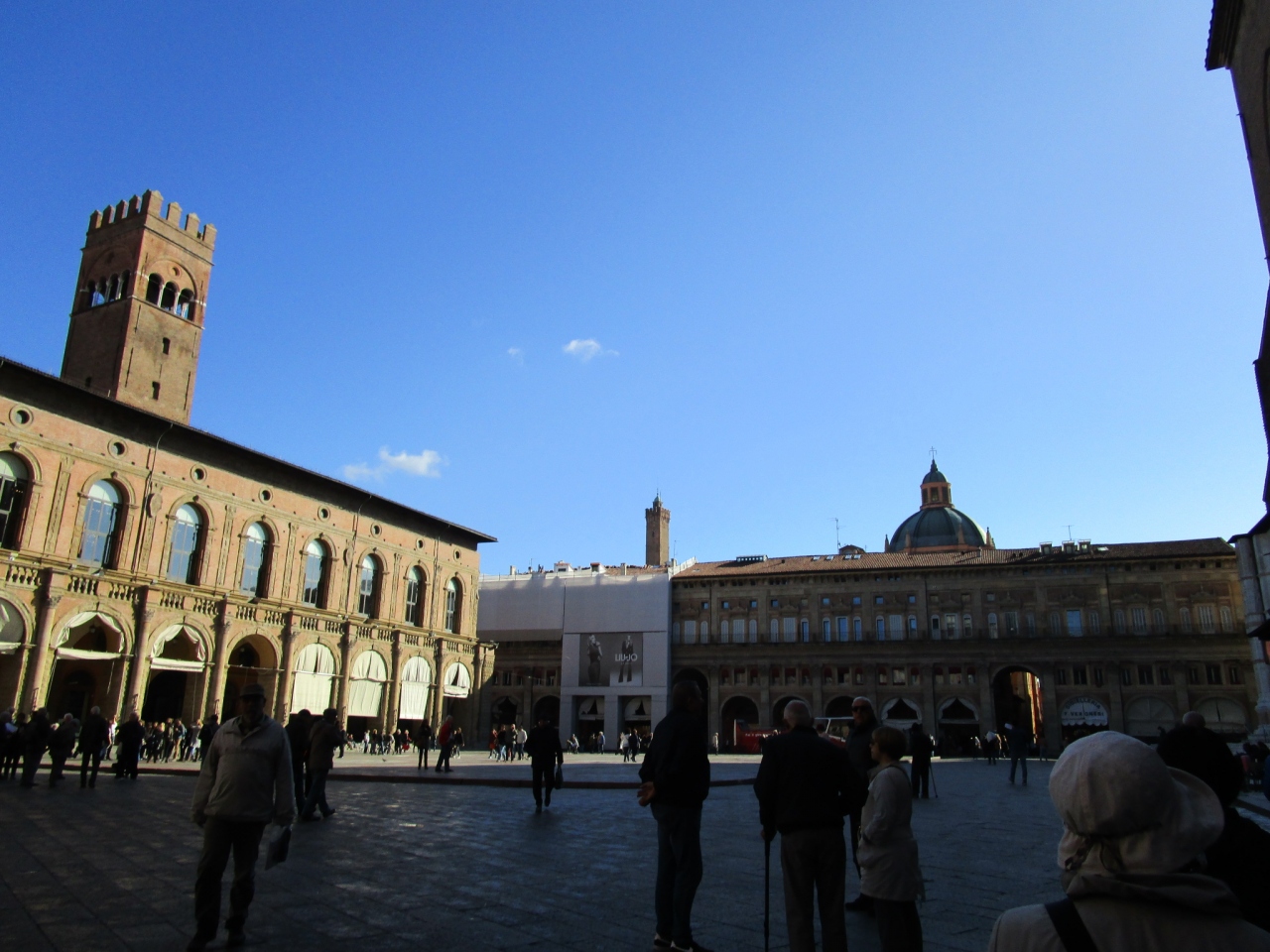 教会の横の道を進めば旧ボローニャ大学、広場から延びる通路は入り組んだ市場になってます。市場を通り抜けた先にはボローニャのシンボルでもある斜塔があります。