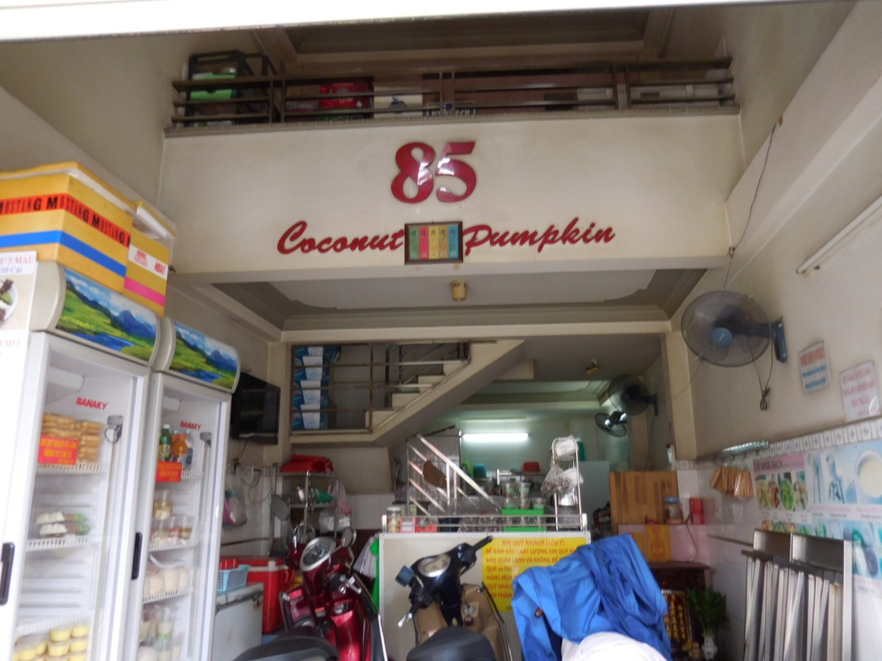 チョロンにあるテイクアウェイの甘味屋さん。住所からとったと思われる85というシンプルな店名です。ココナッツゼリー24000ドンはココナッツを器に下はココナッツジュースのゼリー、上はココナッツミルクのゼリーと2層になっています。ゆるく作ってあるので飲むように食べてしまえる。プラスチックのスプーンがついてきますが、ココナッツの実を食べるならちゃんとしたスプーンが必要です。重いですが持ち帰るだけの価値はあると思います。
