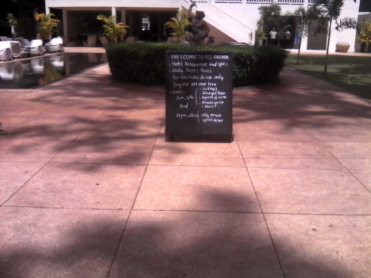 このFCC アンコール レストラン & バーは、ポーカンボー通り沿いにある欧米人に人気のレストランです。毎日黒い看板に書き出されるシェフの日替わりメニューがとても美味しくて、2日続けて通ってしまいました。ディナーのときは満席になっていましたので、時間調節して行くと待たずに食事できると思います。また、併設されているホテルも人気でした。