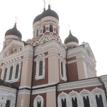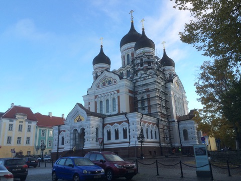 帝政ロシアに支配されていた時代の、1900年に建造されたロシア正教の教会です。タマネギ型のドームを持つ典型的なロシア復古主義スタイルの建物で、タリンで最も目を引く存在です。やっとのことで独立を果たしたエストニア国民にとって、屈辱のロシア支配の象徴でもある、この建物を残すか、破壊するかは重大な問題でした。手に入れた主権を守るため、ロシアの面目を考慮して、残すことに決めたそうです。現在はエストニアに住むロシア正教の信者にとって重要な教会となっています。この国ではプロテスタント、カソリック、ロシア正教の対立など全くなく、共存できているのも、エストニア人の柔軟な姿勢によるものではないかと思います。