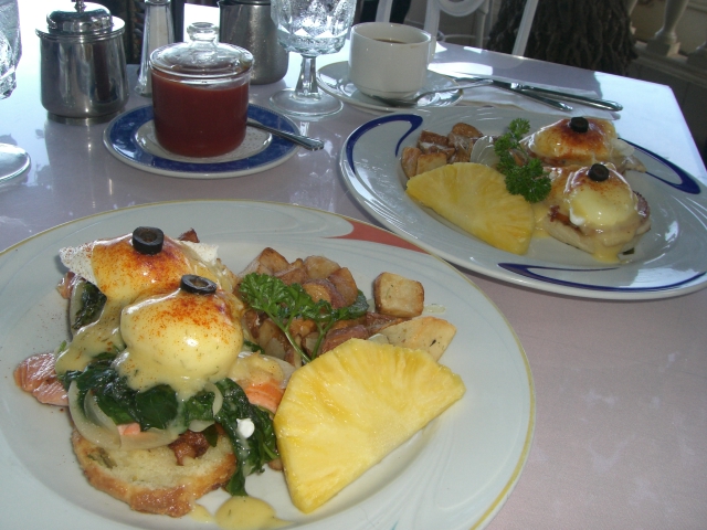 予めネットで予約していきました。最初に対応したスタッフが不愛想だったので、ちょっとテンションダウン。。。想像よりずっと小さなレストランで、日本人も多めだったので、またがっかりしましたが、エッグベネディクトを一口食べたら、テンションが一気に上がりました。ほうれん草&サーモンとオリジナルを注文して、1個ずつシェアして食べましたが、どちらも文句無しの絶品でした。卵がとろーり、ソースも濃厚、ここで食べたら他の店ではもう食べられません。ワイキキ中心から結構歩きますが、朝の散歩だと思えばまた楽しいです。