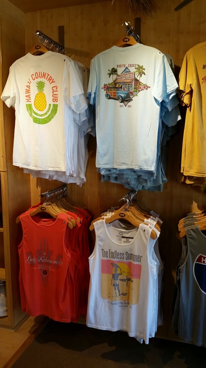 セレクトショップぽい雰囲気もありますが、かっこいいデザイン、柄のシャツがたくさん並んでました。ハワイっぽいものから、日本に帰っても違和感なく着れそうなものまで品揃えは充実してるな~、という印象。今回は何も買いませんでしたが、またハレイワに行ったときには立ち寄りたいお店の一つですね。