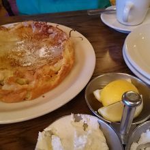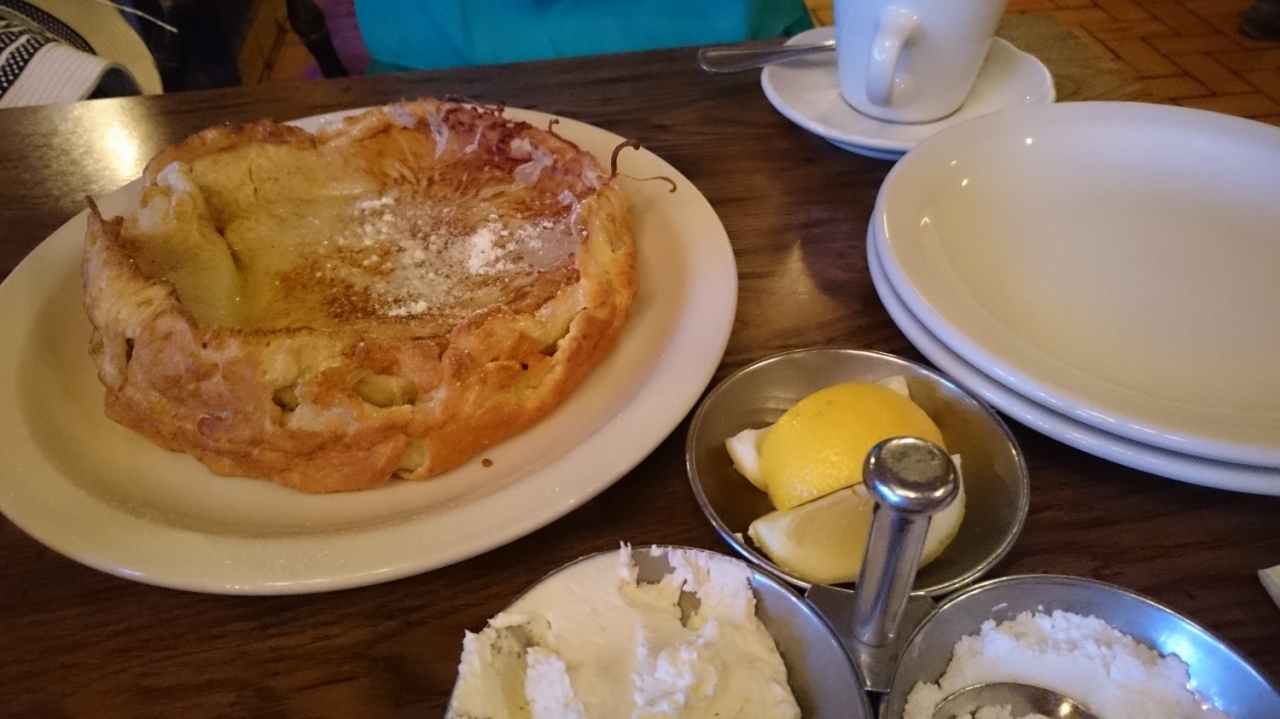 さておき、グアバジュース、コーヒー、ダッチベイビー、野菜のオムレツをたのみました。