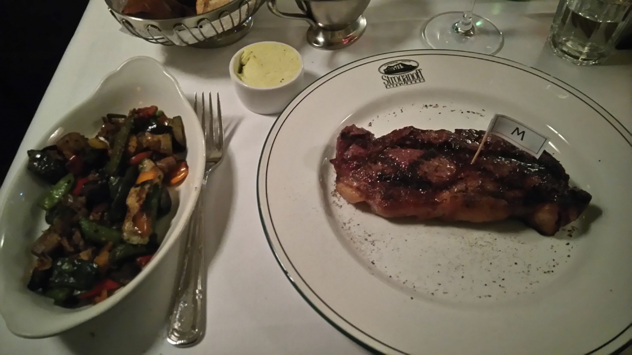 肉はミディアムレアで柔らかく、脂身も赤身のバランスも良くどちらも美味。焼き野菜はパプリカやナスなどどれも日本の物とは違って濃厚。