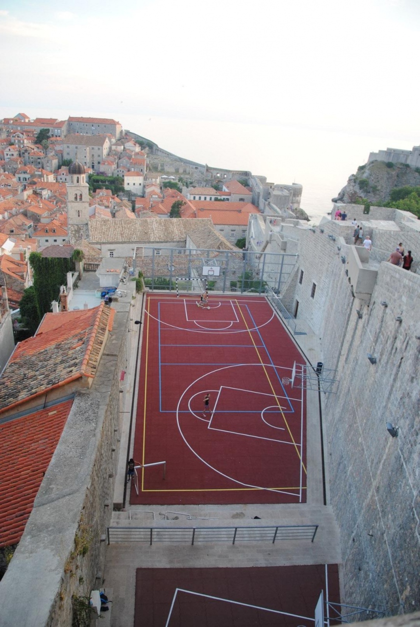 旧市街の城壁を巡っていると北西の角に現れます。旧市街の中に学校の変形のバスケットコートが見えます。ここに人々の生活があることが判ります。