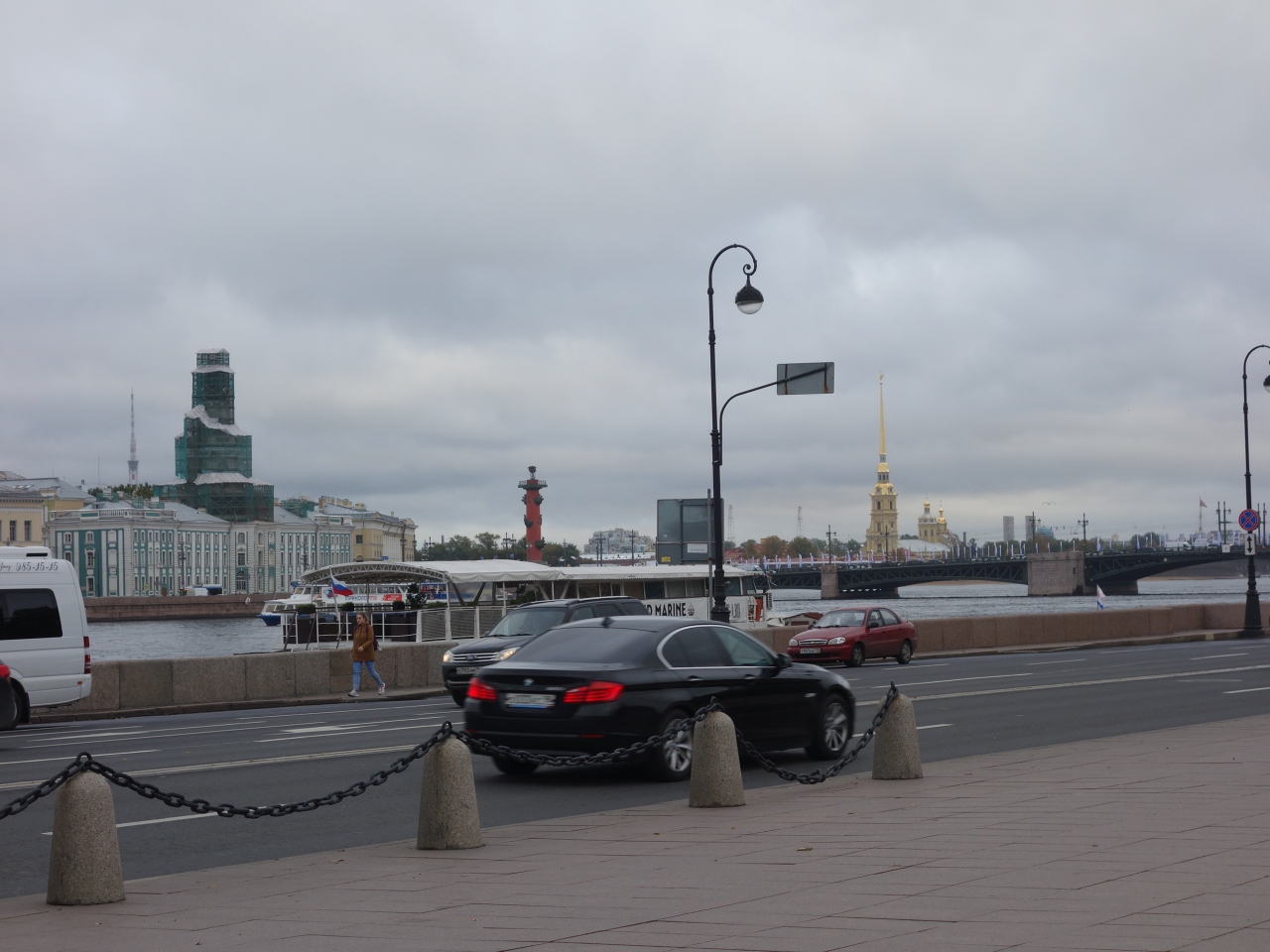 ネヴァ川沿いの広場。エカテリーナがピョトルにおくった青銅の像が置いてある広場です。例の馬にのった像でよくみるやつです。イサーク大聖堂の北側にあります。サンクト・ペテルブルクに来た観光客が必ず行くところです。