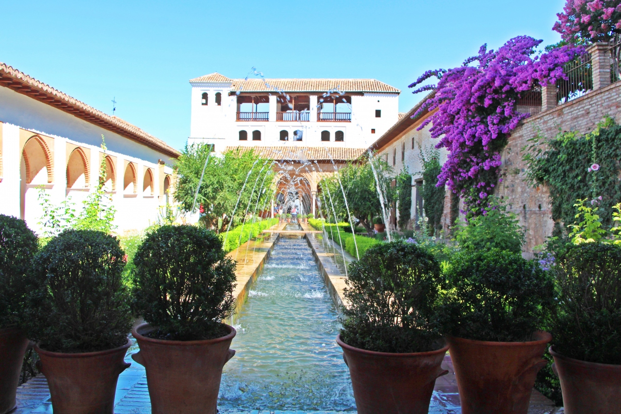 そこはヘネラリーフェの中にある噴水の庭園で、噴水の水が着水する水音が軽やかに響き渡る場所で、ムーアの王様の夏の離宮として利用された場所と云われている場所だ。