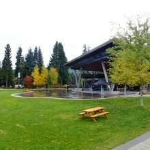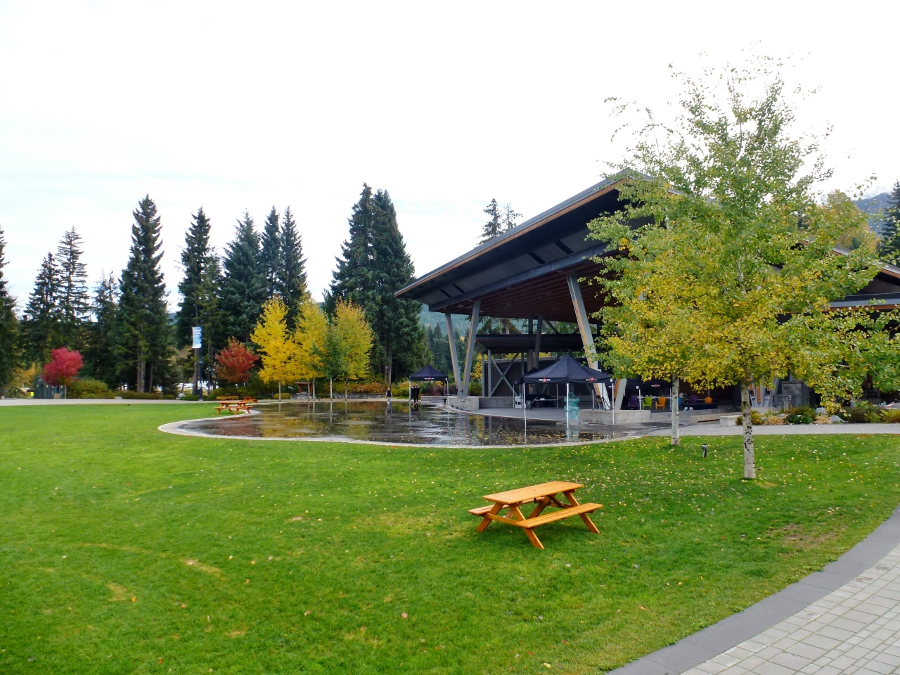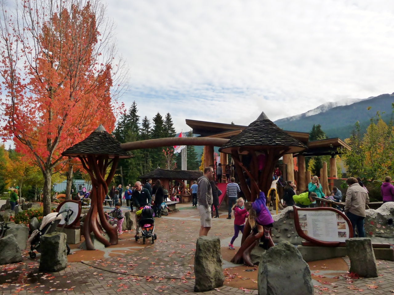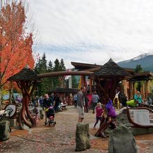 紅葉をバックに大きな五輪マークが印象的でした。記念写真を撮るには良い場所だと思います。オリンピックが終わってから数年経ちますが、最近きれいに整備されたようで野外ステージや子供が遊べるような所もありました。紅葉がちょうど良い感じで秋のウィスラーも良かったです。