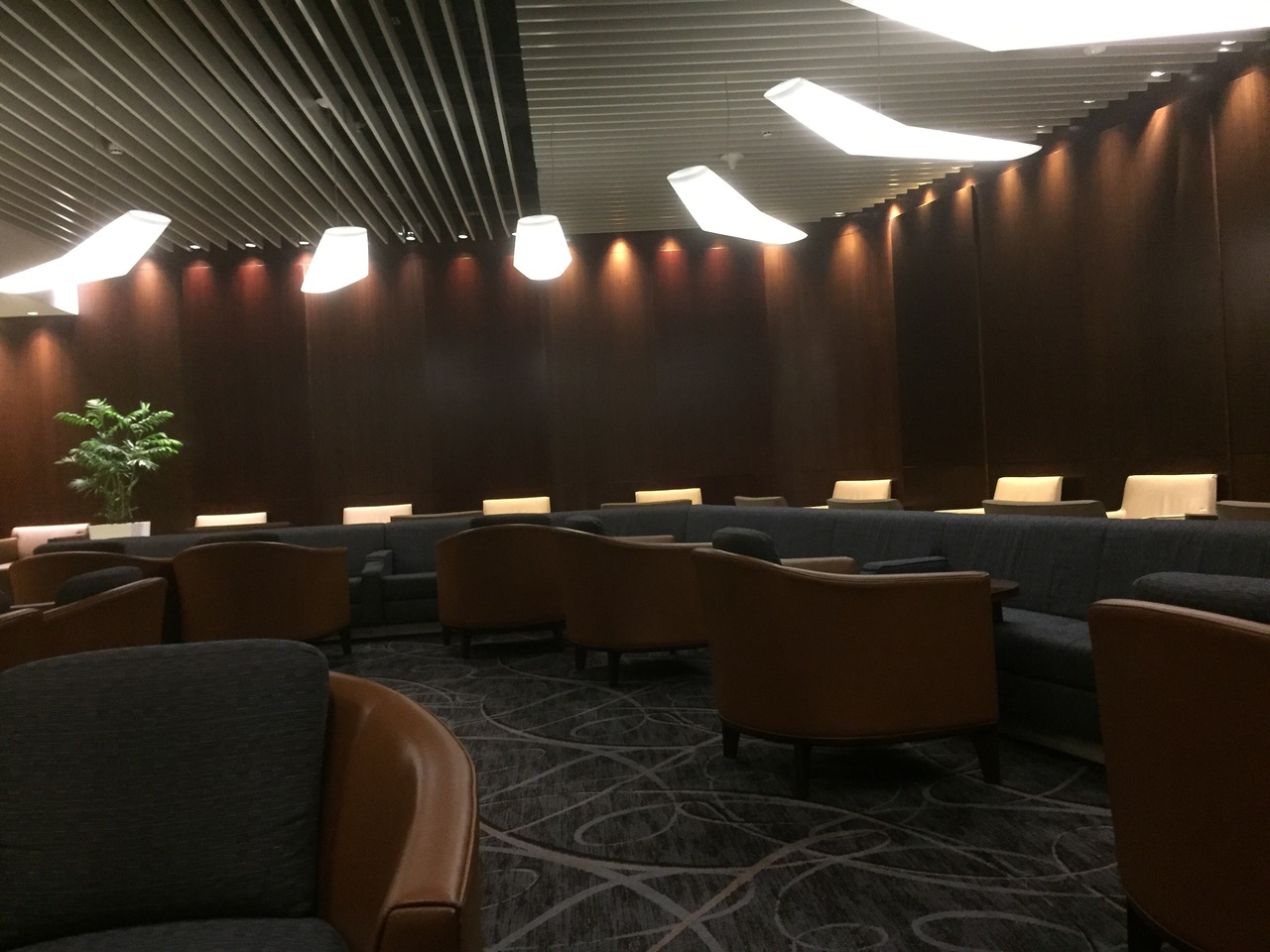 ラウンジは広く、ターミナル2に比べ施設充実。シャワーが目を引く。