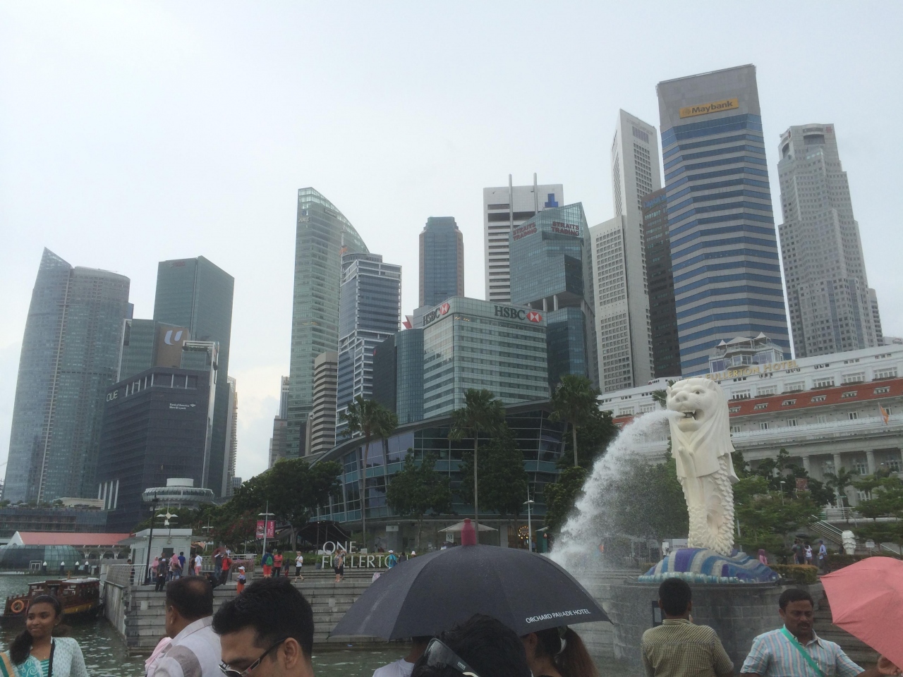 まず、シンガポール川沿いに昼に散策して、この高層ビル群に近くづくことです。近づくにつれて高さに圧倒されます。
