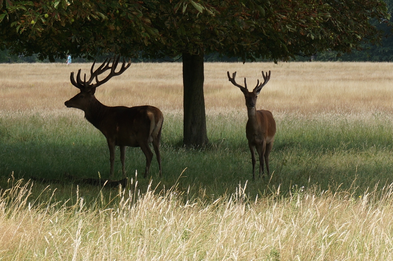 野生の鹿が戯れる、ロンドン郊外の広大な公園