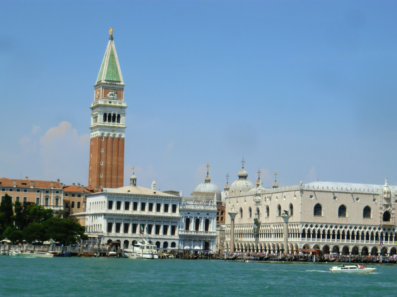 サンマルコ広場への上陸もここからです。広場から眺める運河とサン・ジョルジュ・マッジョーレ島は美しいですが、逆に船から眺めるベネチア本島もここベネチアならではの風景です。景色が素敵な場所ですね。
