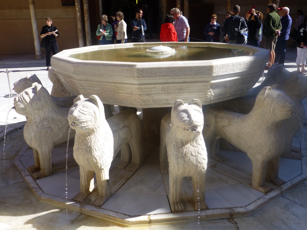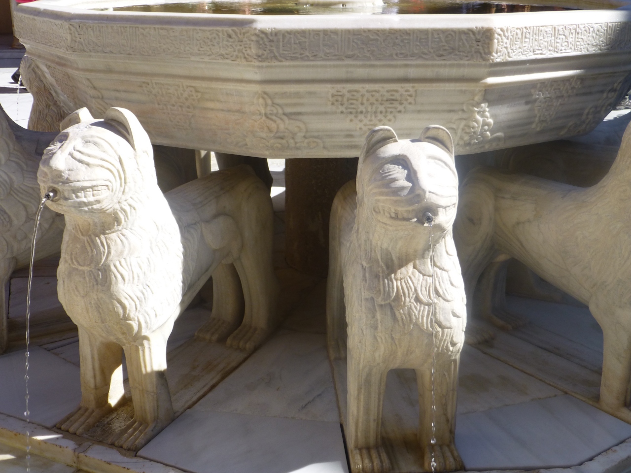 最初一目見た感じは`十二支`と思いましたが、直ぐに`ライオンの中庭`の案内ガイドを見て/犬の様なライオンを見て納得?です。`12頭のライオン像の噴水`と`中庭を取り囲む柱々`(一つの柱は細い/それぞれに装飾模様ですが それが沢山あって/124本!)は、ライオン宮殿ですネ(^o^)