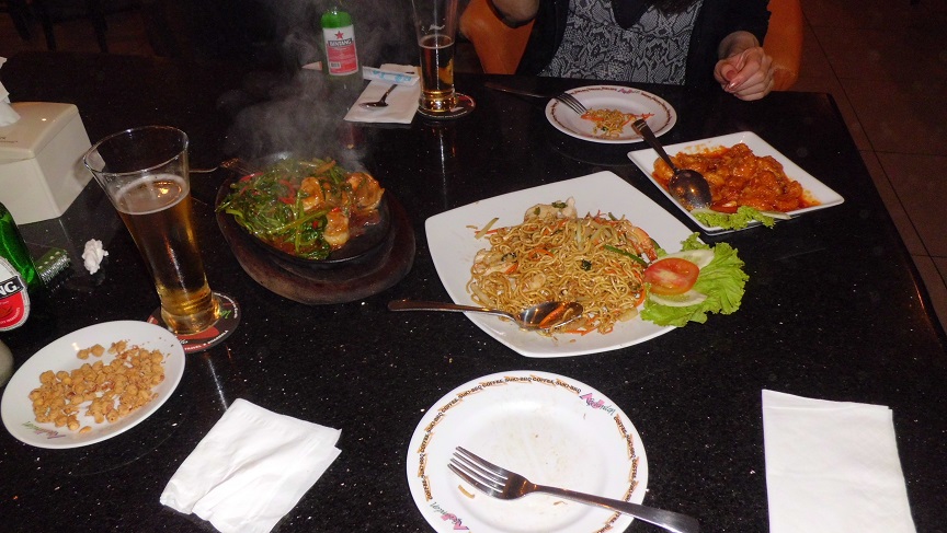 特に空芯菜炒め?は鉄板から湯気がもうもうと出るくらいアツアツで