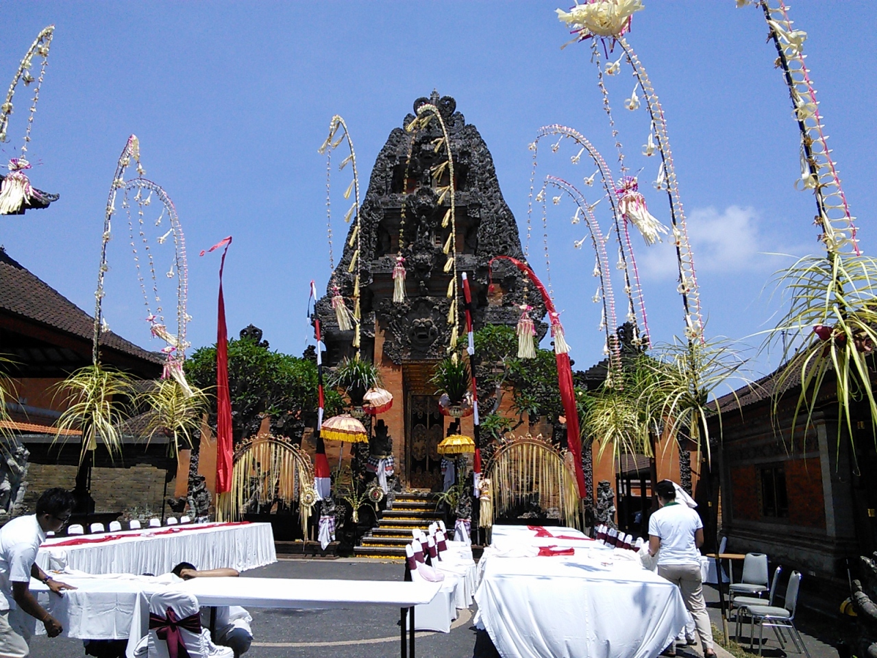 プリアタンにある小さな王宮。しかしウブド王宮よりもちゃんと整備されていてずっと美しいです。おまけに観光客はゼロ、東屋風の建物がいくつもあるので腰を下ろしてのんびり見学できます。何回か行きましたがある日、イスとテーブルが出され食事の準備がされていました。夜にバリ舞踏でもあるのかなと思い再び夜に来てみるとライトアップされ躍りの真っ最中でした。しかしこれはとあるホテル主催の宿泊者のための特別公演、もちろん一般の人は立ち入り不可。でも入口から少し見れました。他にもケチャやレゴンダンスが定期的に行われます(スケジュール要確認)。ただ文化財として保護するだけではなくこの様に“活きた文化財”として活用されるのはすばらしいと思います。