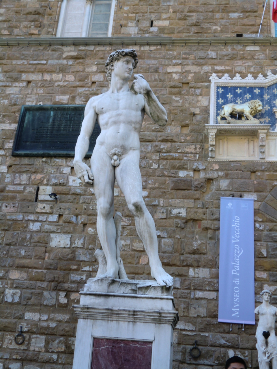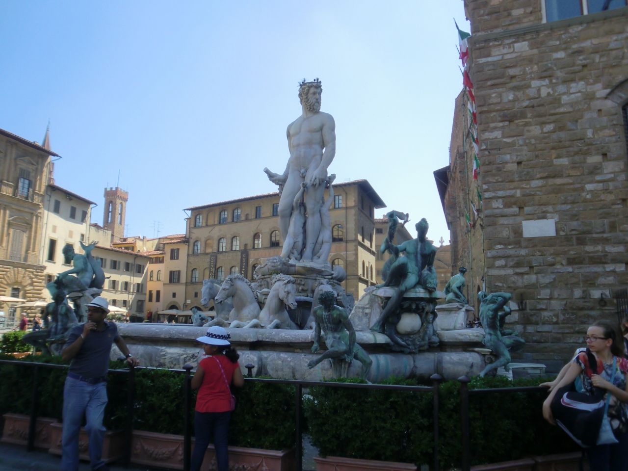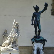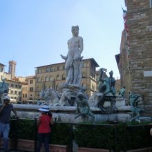 この広場の特徴は多くの彫刻が展示されているという事です。例えばネプチューンの噴水、ダビデ像(レプリカです。)、ペルセウスなどです。これはさながら野外美術館の様相でした。