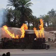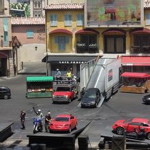 私が一番好きなのは、バックロットツアーです。映画製作の裏側を知ることができるアトラクションで、はじめの10分程度は歩いてセットの小道具や特撮技術の実演などを見ます。後半の15分くらいはトラムに乗って、さらにNYなどの景色を再現したセットなどを説明を聞きながら見て行きます。最後のクライマックスの水があふれてくるところは、鉱山側に座っている人、濡れる可能性ありなので、ビデオやカメラには気をつけてください。水の量も大迫力でアメリカらしいダイナミックさが味わえます。