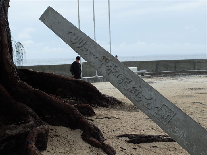 公園と言っても、海岸に面した場所の南洋マツを伐採して造られた敷地に上記の大きな碑があるくらい。