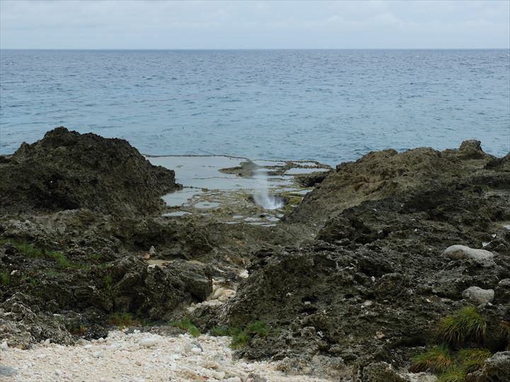 岩に穴が開いていて、大きな波が来ると海水を噴き上げる様子も見られました。