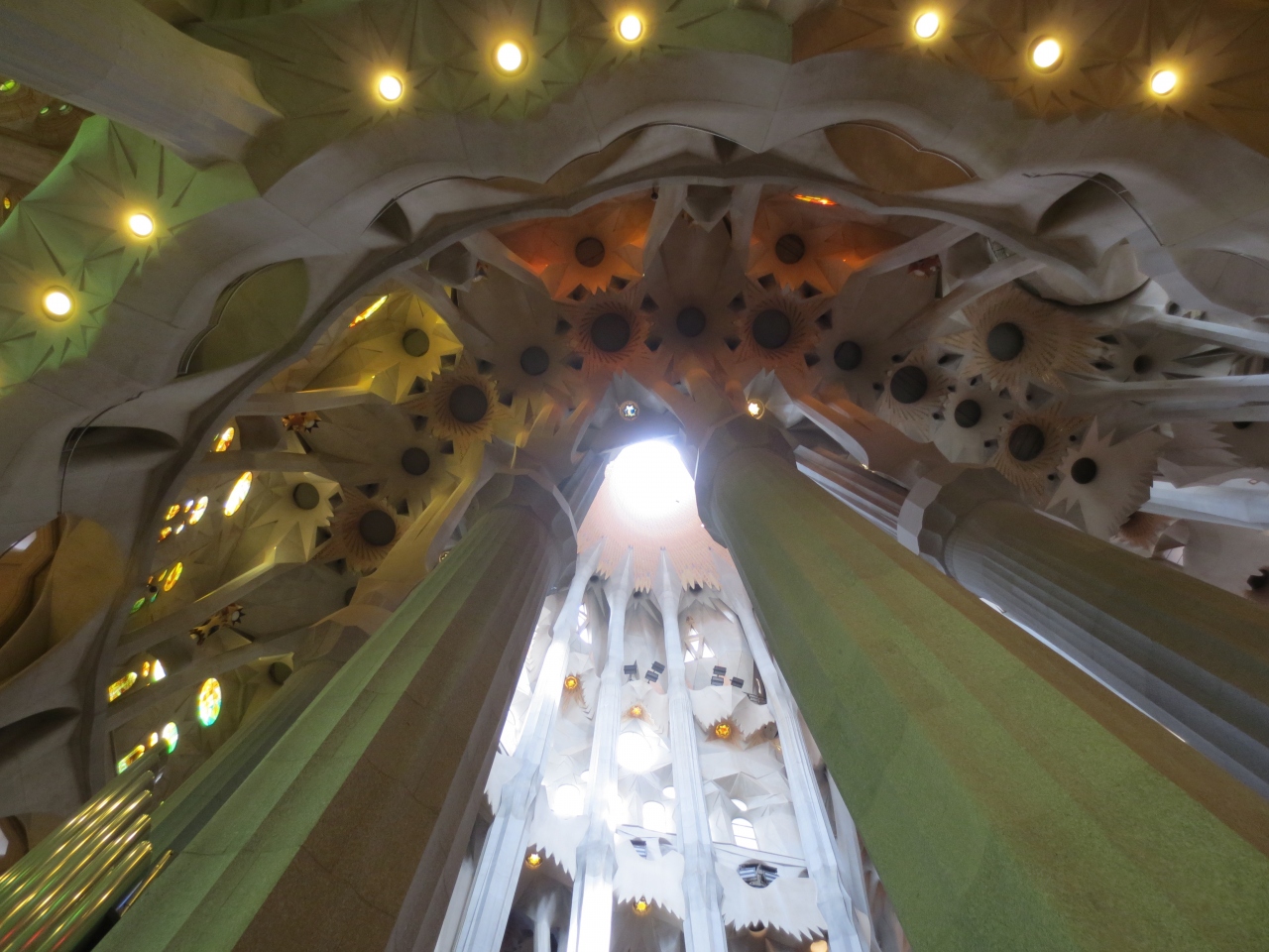 タワーにも登りました。ここも時間指定でサグラダファミリアのチケットと一緒に買わないといけないようです。塔から眺めるバルセロナの景色には大して感動はないのですが、上から見るサグラダファミリアは面白かったです。下から見ているときは気ずかなかったのですが、塔の先端がイチゴやブドウ(?それとのべリー)などのフルーツになっているのがかわいらしかったです。登りはエレベーターでしたが帰りは階段。長ーいらせん階段をひらすら降りていきます。暗い場所があったり、途中で会談の回転方向が逆になったりと大変でした。