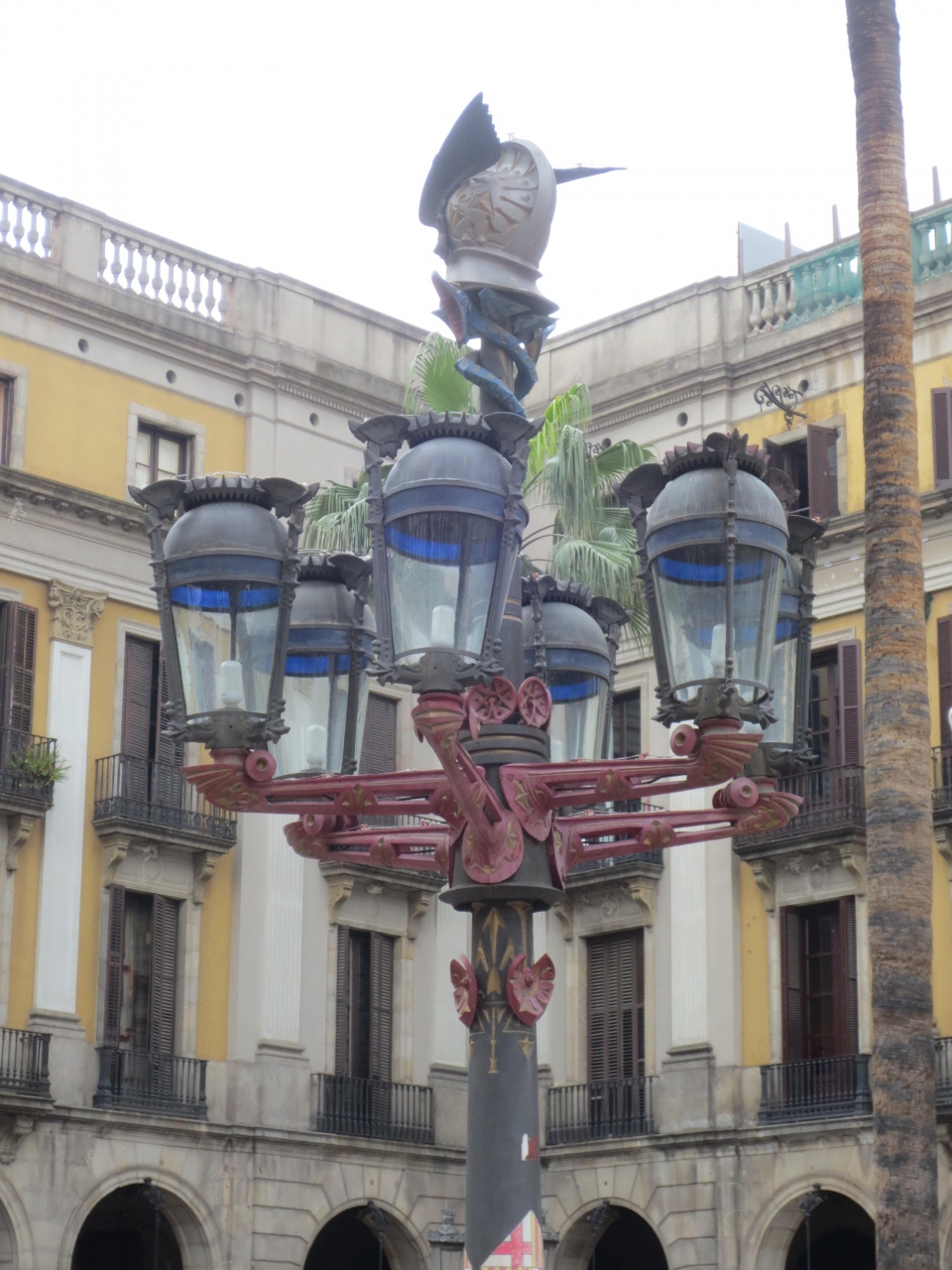 ゴシック地区にある、周りを建物に囲まれた広場。ここには鎧をモチーフにした変わった形をした街灯があります。なんとこれはガウディによるものだそうです。街灯自体が風景に溶け込んでいてそんなに目立たないため、意識していなければ見過ごしてしまいそうですが、面白いのでぜひ。