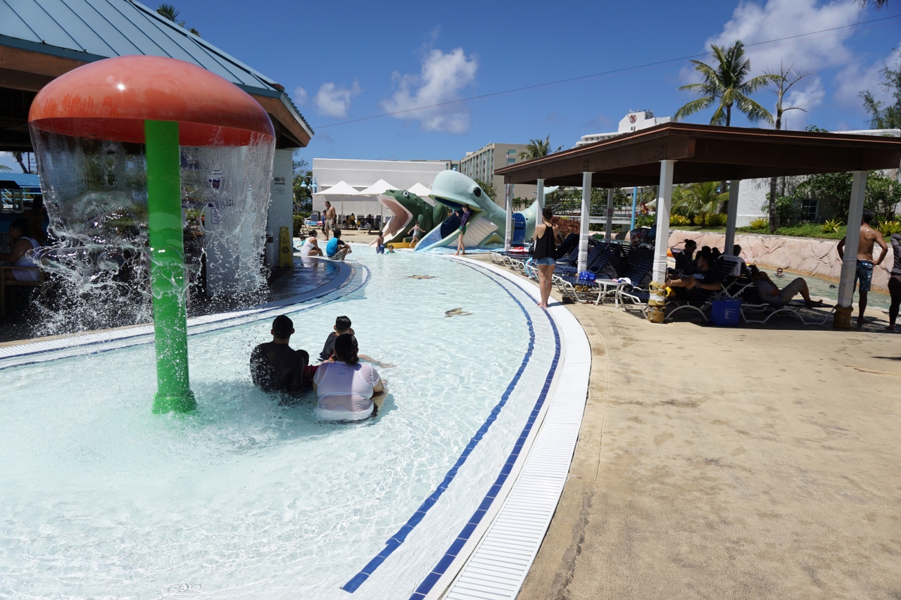オンワードホテル併設で、ホテル宿泊者なら無料(宿泊者でないと大人一人25$)で利用できる。流水プールや造波プール、スライダーなどがあり一日いても飽きない。また乳幼児連れにも安心な浅いプールや、専用のすべり台などもあり、子連れにも優しい。