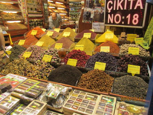 エジプシャンバザールは小さなバザールです。昔はスパイスバザールと呼ばれた様で今でもスパイスを扱う店が多くあります。土産物の様に箱入りが少なく、量り売り、バラ売りが目立ちます。観光客だけでなく地元の人も買い物に来ています。バザールとはモスクの脇にある商店街で利益をモスクに還元してモスクが成り立っているそうです。日本も浅草寺の仲見世の様に昔から寺の門前市があります。