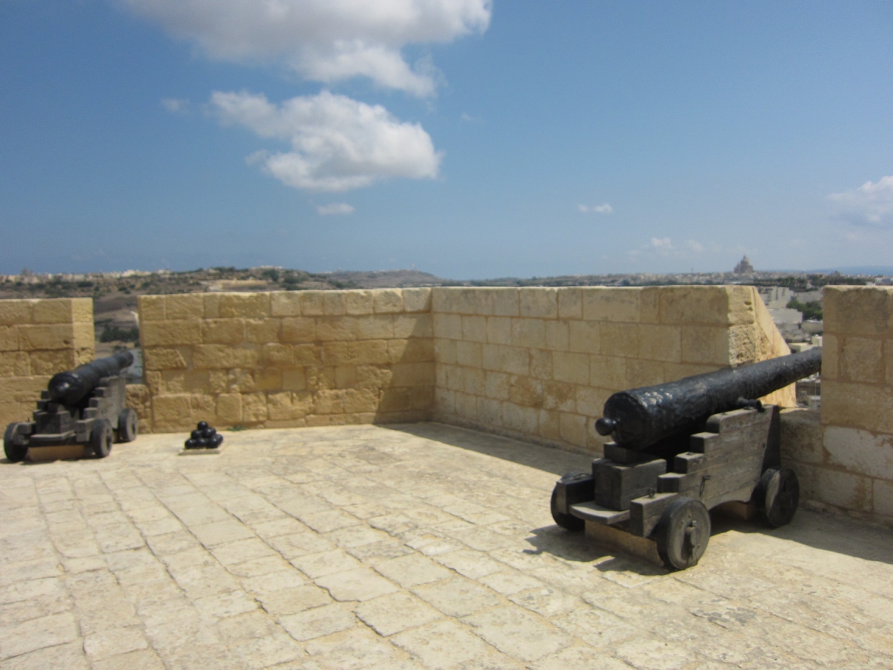 ゴゾ島の中心地ビクトリアの大聖堂の横から城壁に出るとゴゾ島ののどかな景色が見渡せます。城壁なので大砲もところどころにありました。城壁の一角に地下に下りる場所があり、ドネーションのみで入ることができ、不思議な空間に行くことができました。
