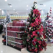 入口には早くもクリスマス商品が…、ツリー飾りの豊富さも半端あません。