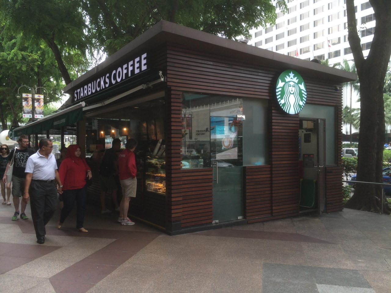 歩いていると、歩道になんとスターバックスがあるんです。思わず写真を撮ってしまいました。歩道にあるので、小ぢんまりとしたものですが、賑わっていました。