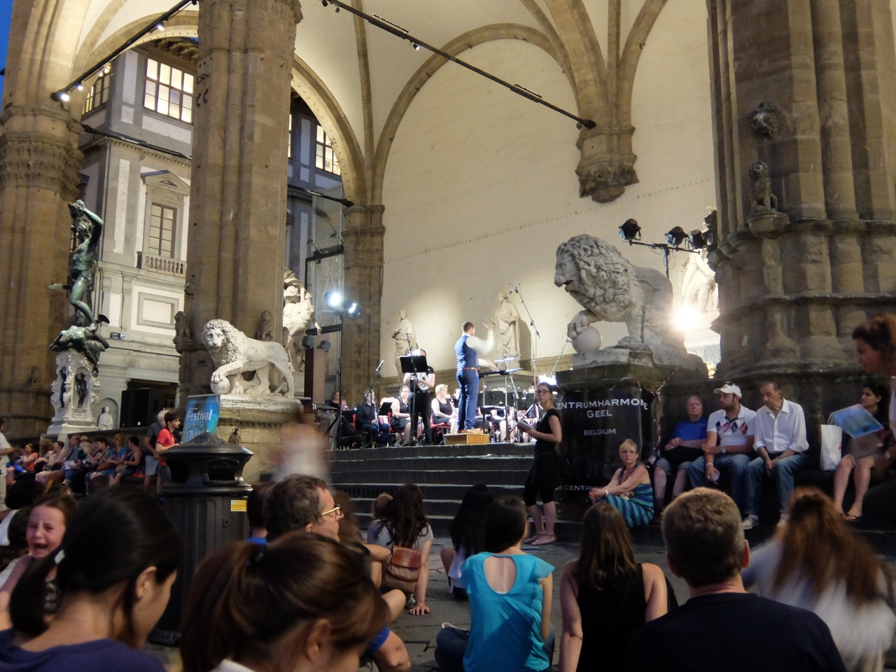 7月に訪れましたが、午後9時過ぎから野外コンサートが楽しめました。演奏はスピーカで拡声されていて音響のクオリティは大したことありませんが、演奏自体は最高でした。屋外なので、ポンテ・ベッキオから続くサンタ・マリア通りあたりにある店でパニーニやジェラートをテイクアウトして食べながら気軽に聞くことができます。演奏は夜11時ころまで続いていたようです。