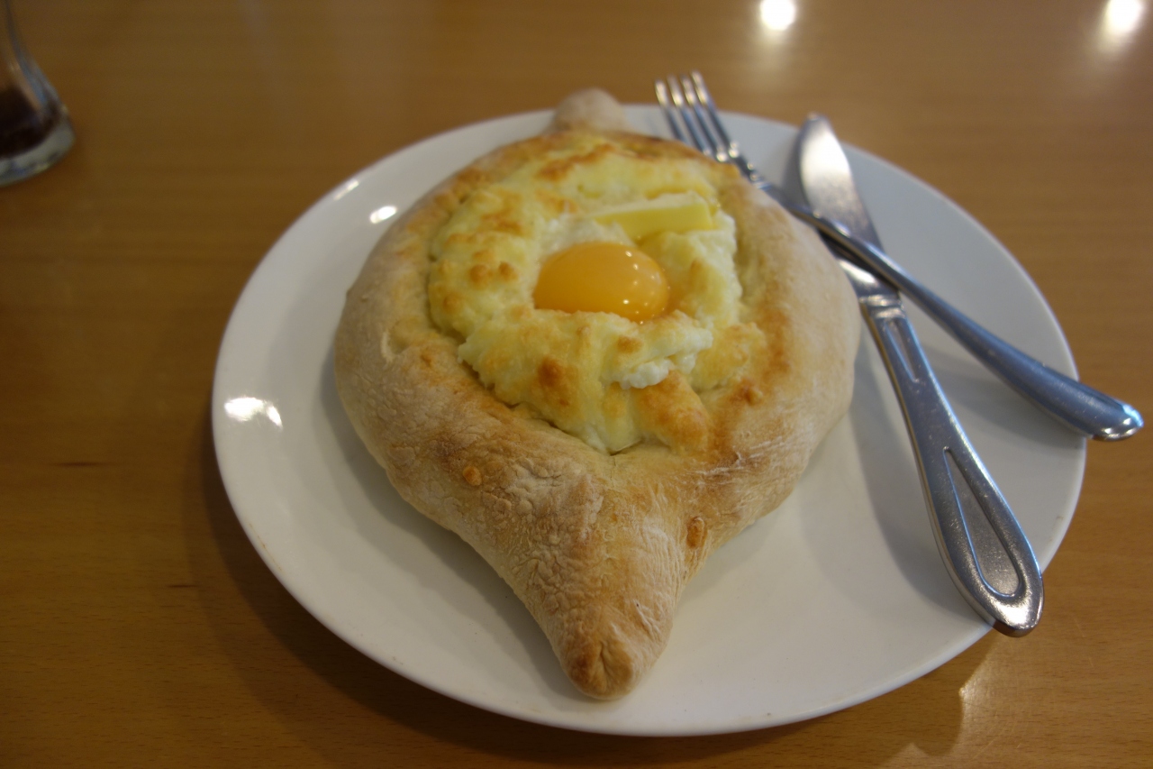 ハチャプリは日本風のチーズパンを想像していたら大間違いで,Sサイズでも大きくチーズも生々しい感じで日本人の口にはあまり合わないような気がしました.