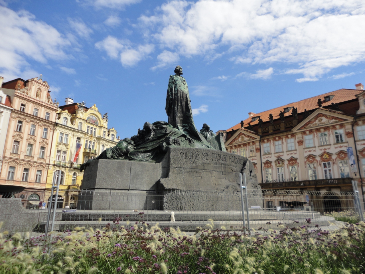 市内観光の出発点でした。像の近くから市内観光のバスは出発します。出発前に、旧市街地の中心部を散策。この像は、その中心部にあります。ストリートパフォーマーが、色々な楽器を持ってきて楽しませてくれます。そうそう、みなさんチップを忘れないように。