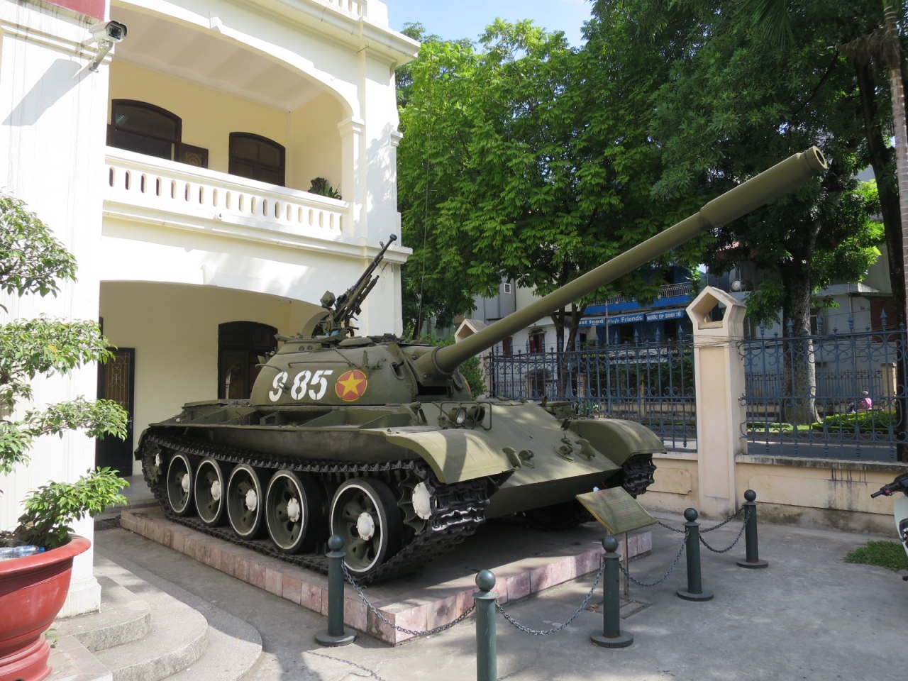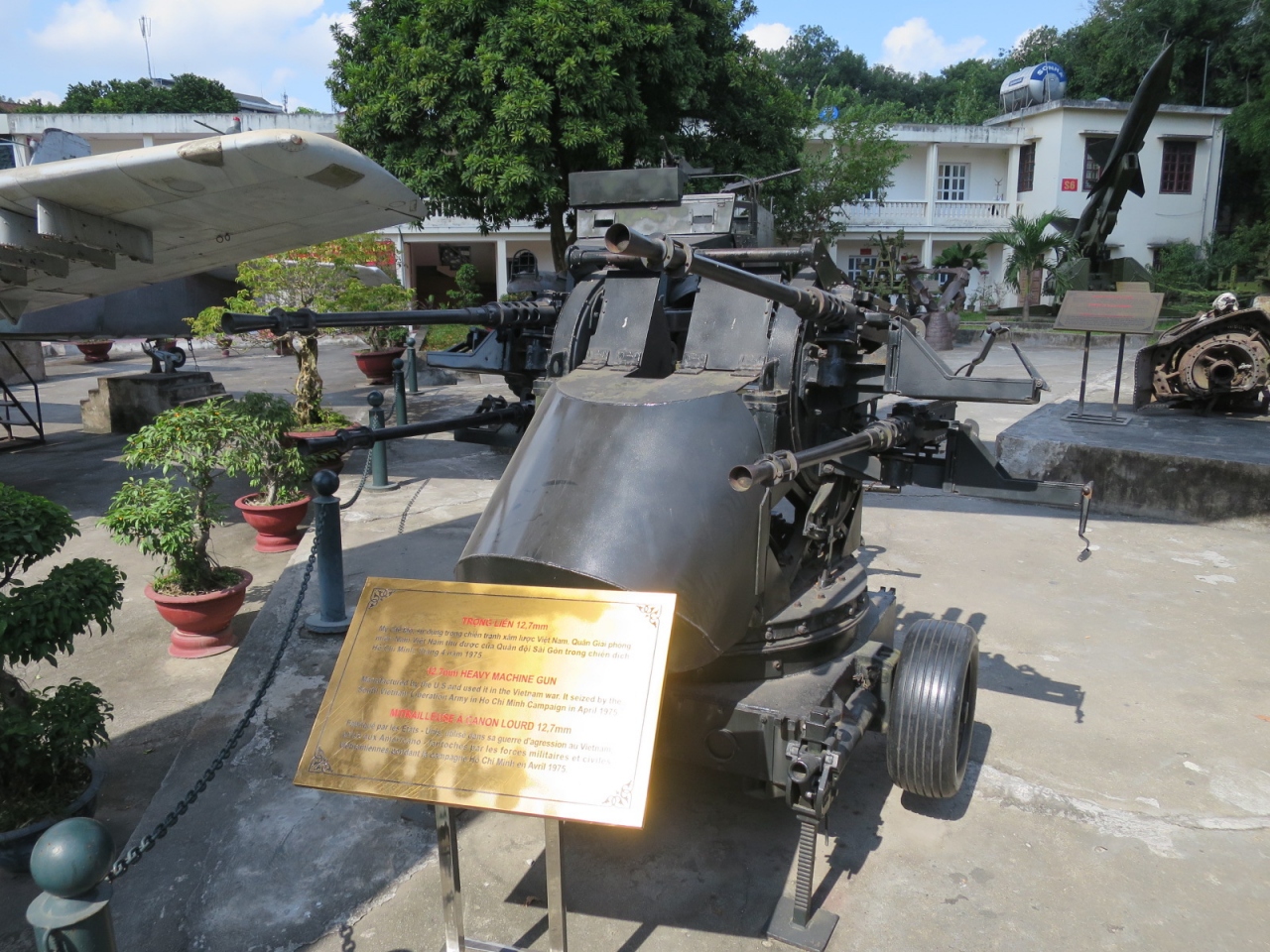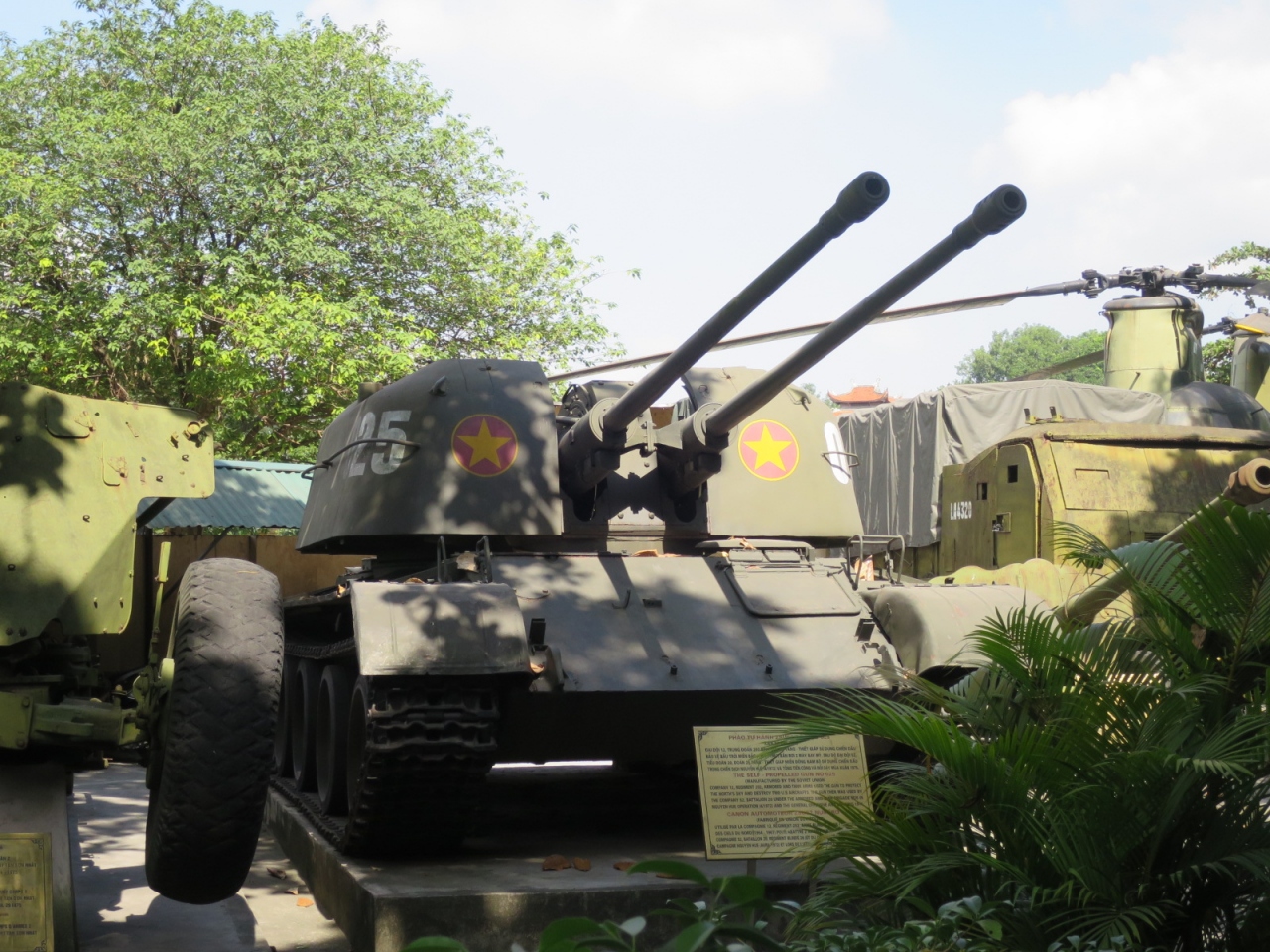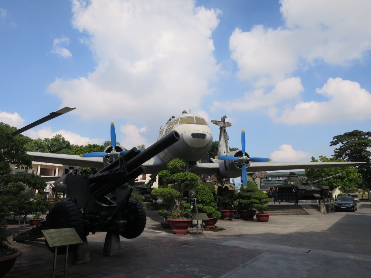 まず最初に戦車やミグ戦闘機が屋外展示されており、その中央にベトナム戦史館がある。内容はさっぱりわからないが、勝利についてかかれているのだろう。ミグ戦闘機の裏手を進むと、砲台兵器が陳列され、フラッグタワー、鹵獲や撃墜した米軍機、ソ連製兵器の屋外展示がある。その横にも館内展示があり南北ベトナムの戦跡が解説してある。(もちろん読めない)