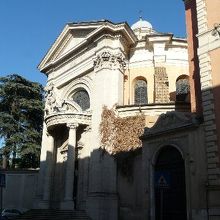 奥行きよりも幅のほうが長いという異色の設計の教会は