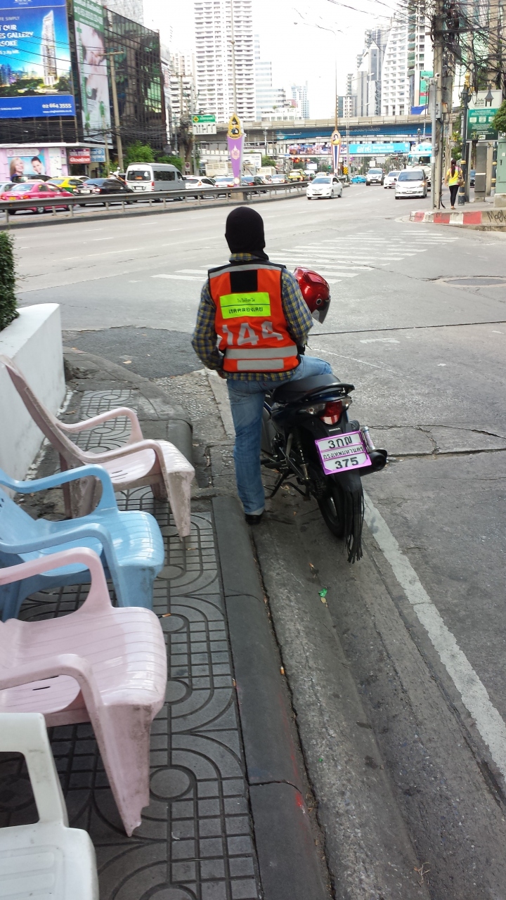 バンコクのいたるところに蛍光色のジャケットをきた人がバイクのそばでたむろしている姿を見かけますが彼らがバイクタクシーの人たちです。ヘルメットなしで二人乗りで移動することになるので慣れるまでは結構怖い。料金は交渉性。ちょっとした移動で20~40バーツぐらいが相場か?渋滞時はすり抜けて移動できるので急いでいるときには便利。ただし長距離には向かない。