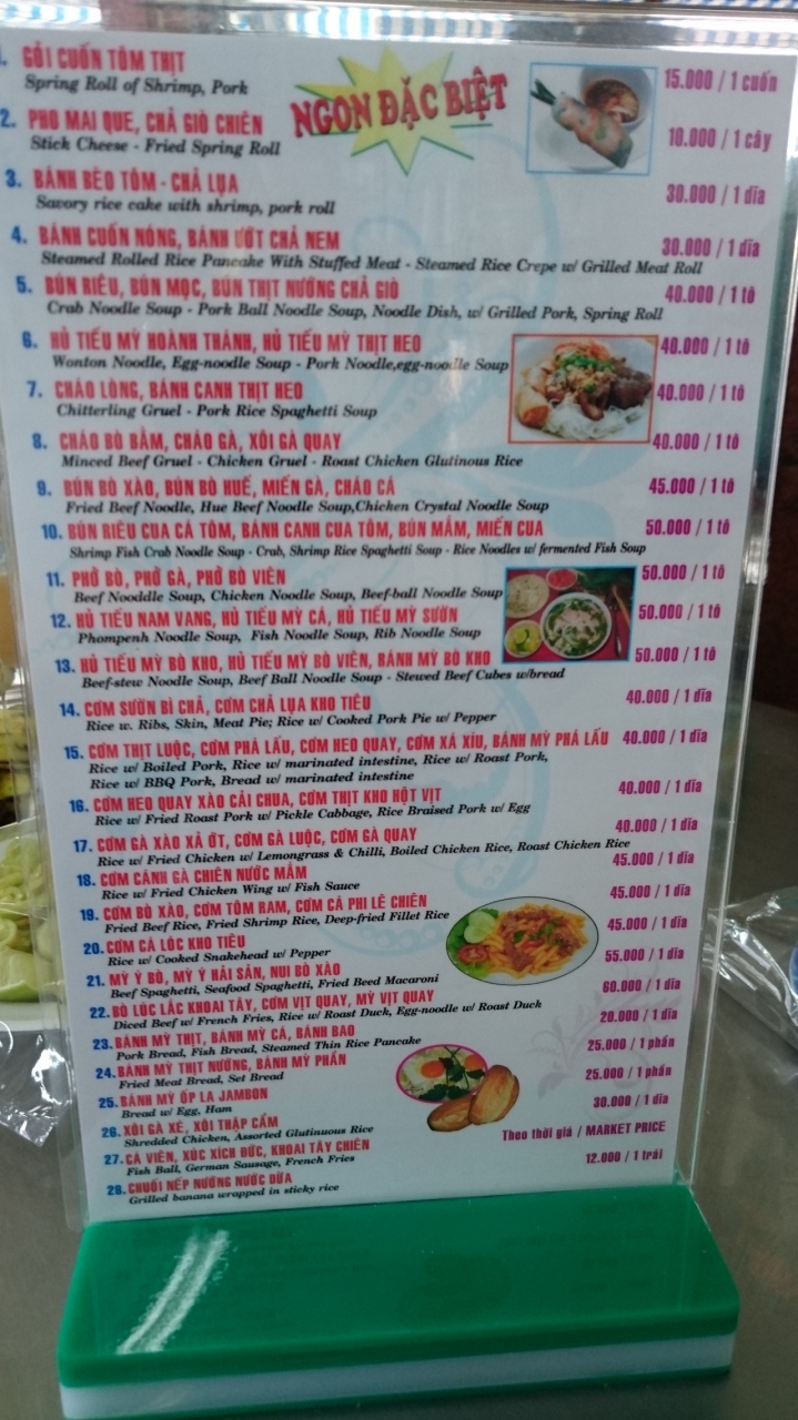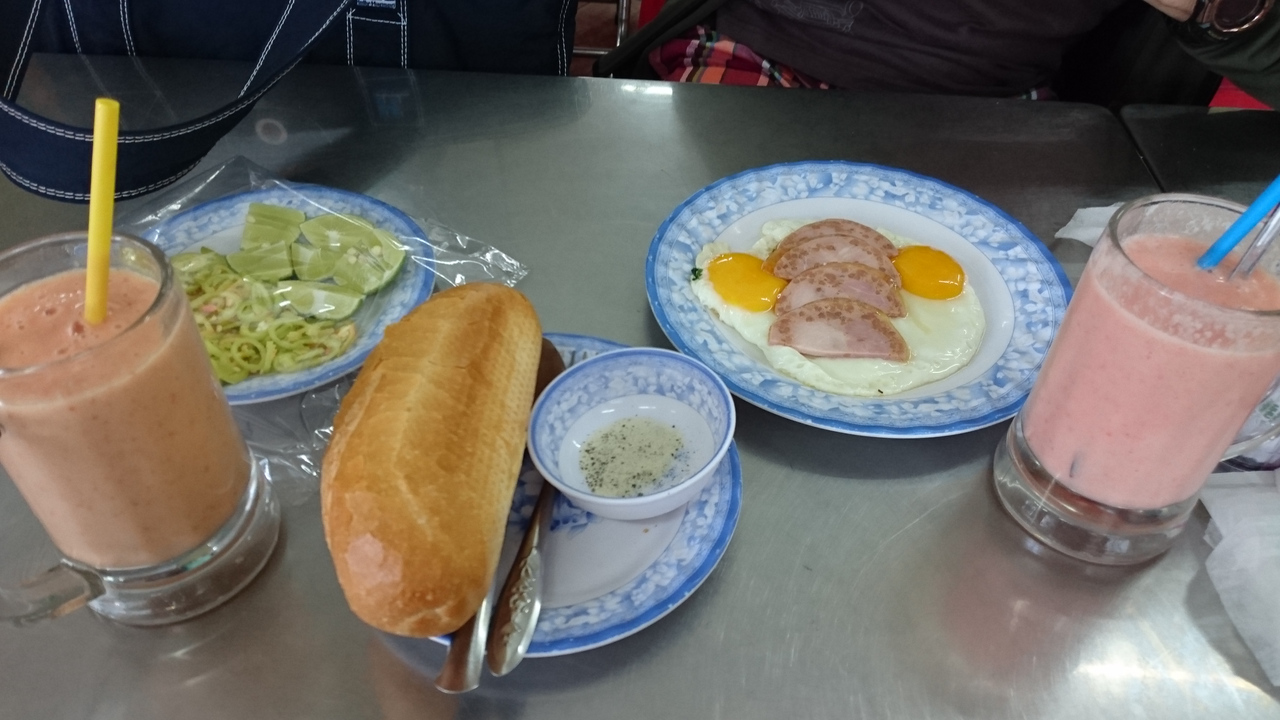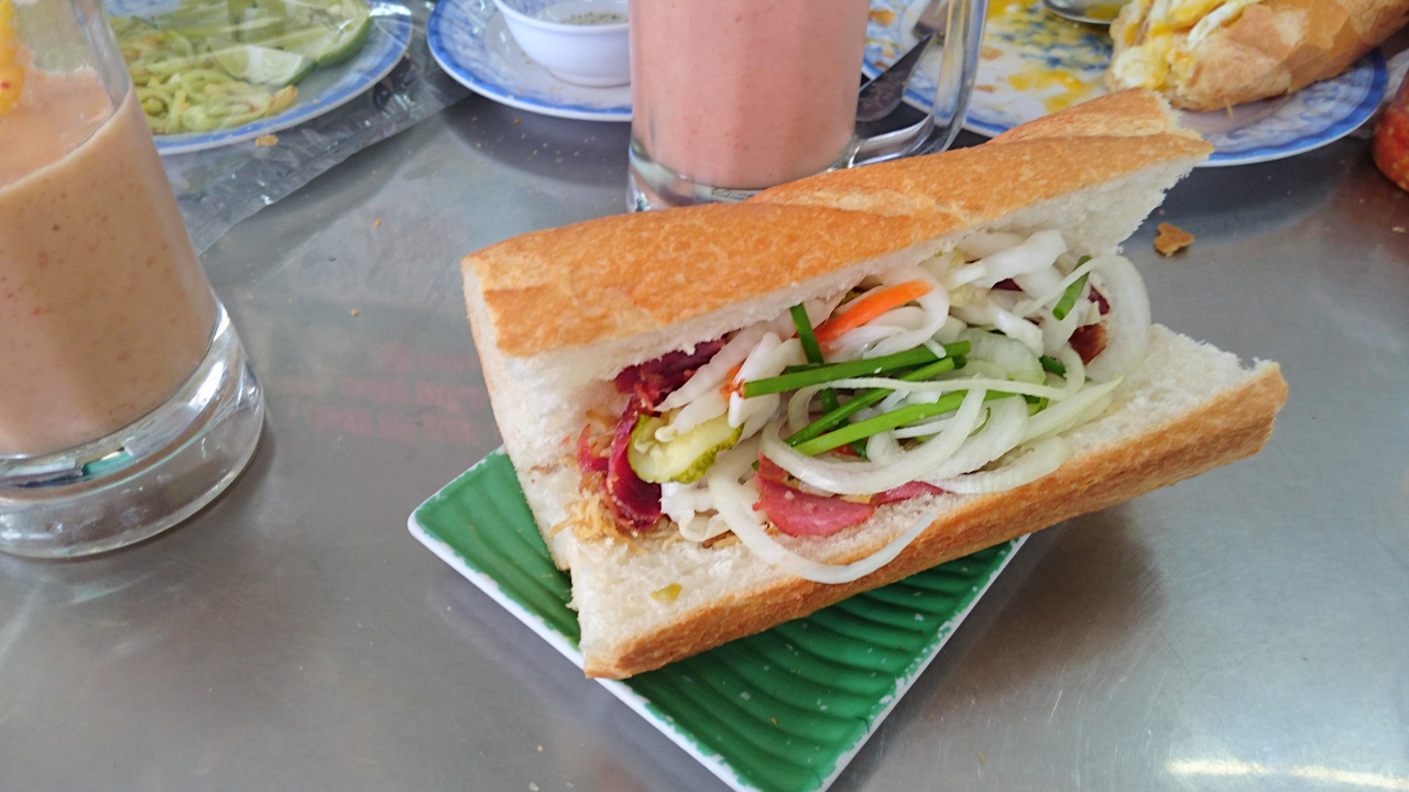 ドンコイ通り沿いのホテルから歩けます。店内でシントーとバインミーをいただきました。メニューは英語も載っています。バインミーと書いてあったので頼んでみたものの、パンと具材が別々にやってきたりして。バインミーは期待どおりではありませんでした。が、シントーは本当に美味しくて来て良かったと思いました。お腹も壊さなかったですよ。