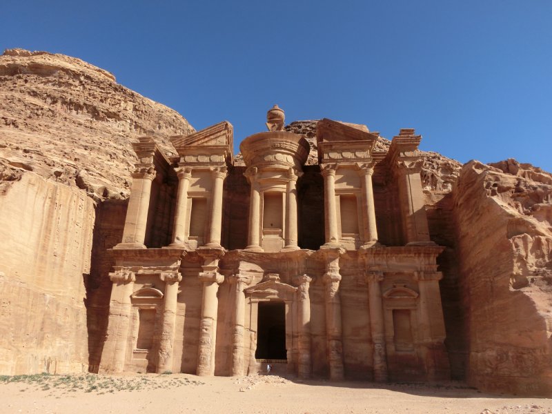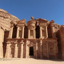 ペトラ遺跡の最奥地にある修道院。途中は整備されているとはいえ長い山道が続き、簡単な道のりではありませんがわざわざ行く価値のある場所です。途中の景色も素晴らしいですし、たどり着いた修道院もエルハズネと違い静謐な空間で、前のカフェでお茶をいただきながら眺めるのはぜいたくな時間といえると思います。ロバでいけば早い、と営業されますが、ロバが安全なのかどうかは何とも言えないところです。