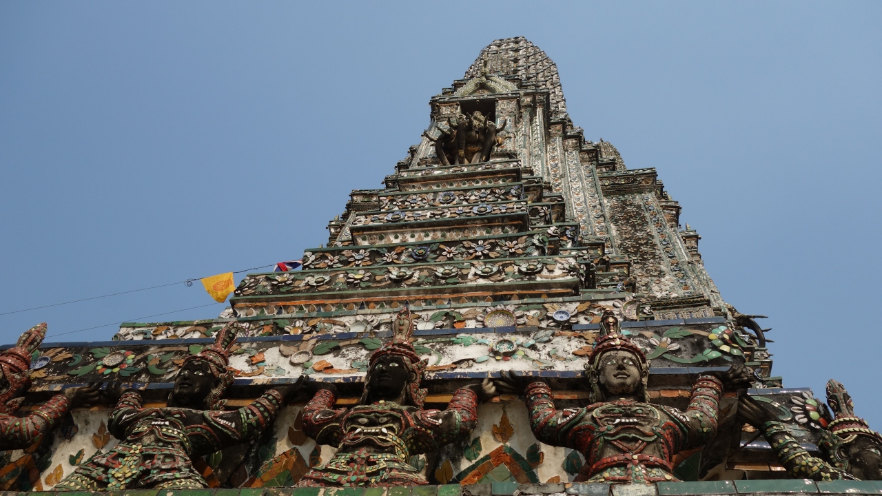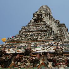 ワットアルンにアル大仏塔、仏塔でアル以上仏教を祭ってある事は間違いないのですが、塔の上部にはヒンドゥーやバラモンの神でアル、インドラ神が鎮座しています。仏教の起源から考えてインドラの存在は、遠くインドからの流れを考えさせられます。