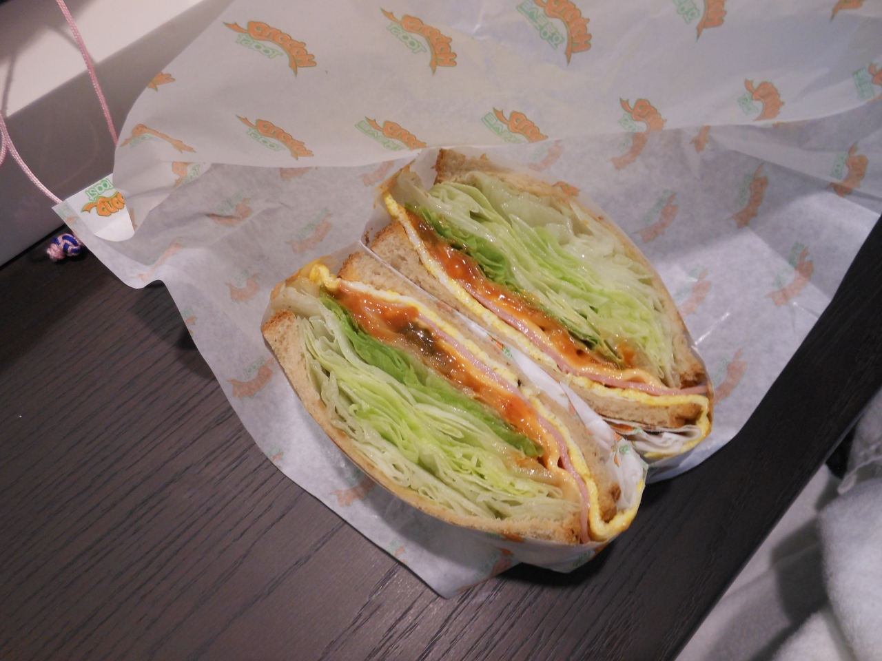 35000ウオンでハム チーズ 玉子 たくさんのレタスと甘辛いソースが入っています。