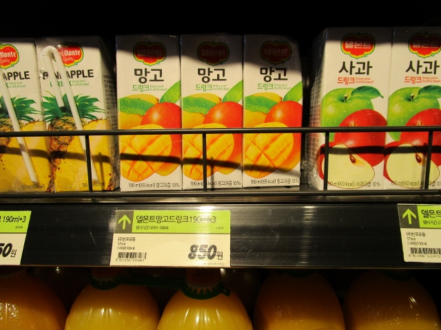 品揃えも結構充実。ミネラルウォーターが500ml入り1本200ウォンと格安でした。
